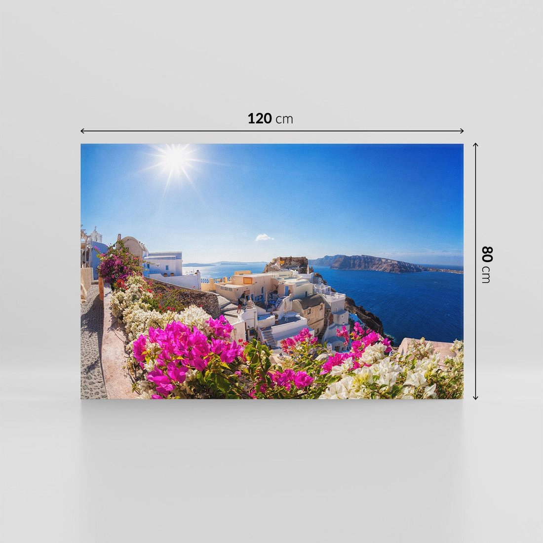 Przenoś się do malowniczego Santorini dzięki temu uroczemu obrazowi przedstawiającemu wyspę. Błękitne morze, białe domy i romantyczne krajobrazy tworzą wyjątkową kompozycję. Ten obraz dodaje radości i sielskiego uroku, idealny dla miłośników Grecji i czarujących wysp.