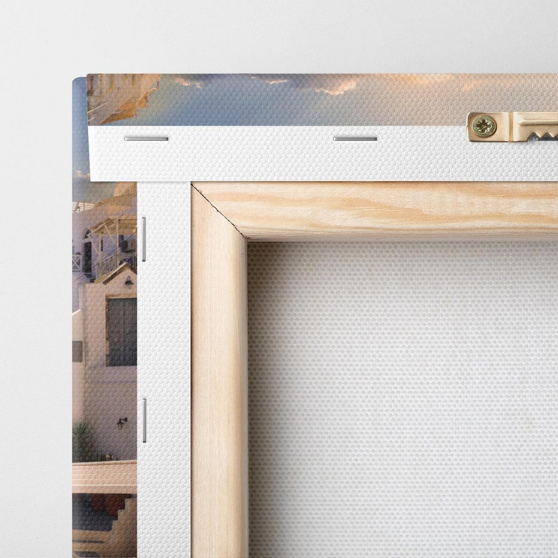 Odkryj urok malowniczej Santorini dzięki temu uroczemu obrazowi przedstawiającemu to greckie miejsce. Błękitne dachy, białe domy i niebiańskie widoki tworzą romantyczną atmosferę. Ta kompozycja dodaje uroku i greckiego stylu, idealna dla miłośników błękitnych odcieni i śródziemnomorskiego klimatu.