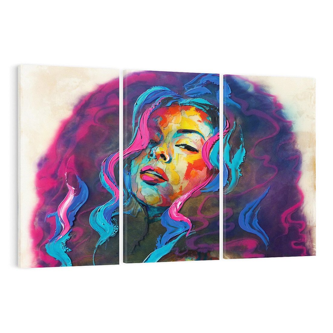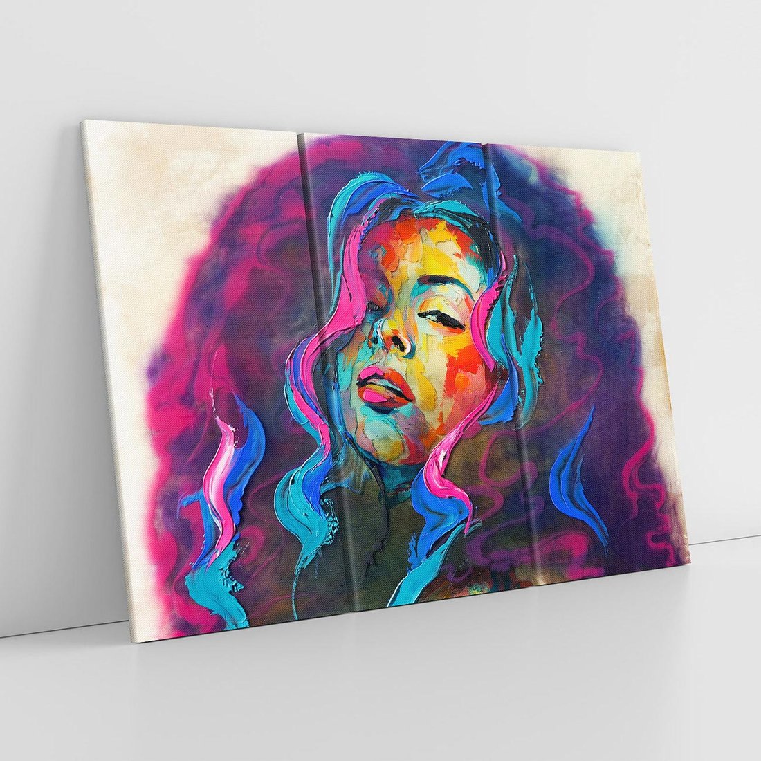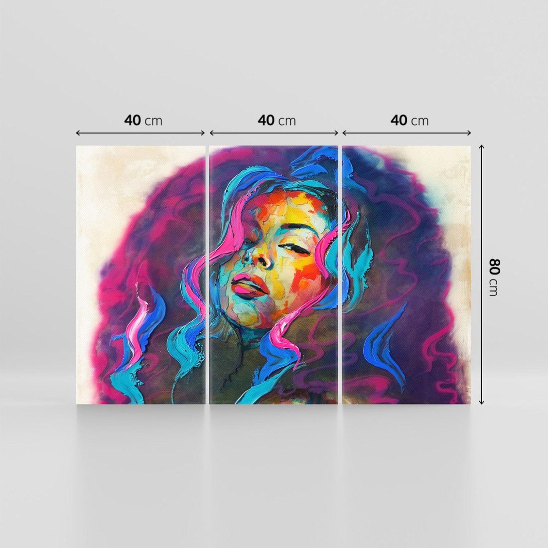 Ta dynamiczna grafika komputerowa odbiega od tradycyjnych portretów i prezentuje abstrakcyjną formę kobiety z bujnymi, intensywnie kolorowymi włosami. Wizualna siła obrazu przypomina olejne malarstwo, co nadaje mu wyjątkowego uroku. To niezwykłe dzieło sztuki pomoże ożywić przestrzeń i przyciągnie uwagę miłośników zarówno sztuki tradycyjnej, jak i współczesnej.