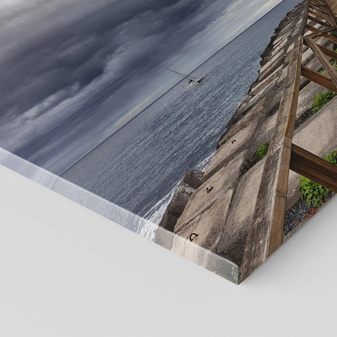 Odczuj potęgę natury dzięki temu emocjonującemu obrazowi przedstawiającemu burzę nad molo. Mroczne chmury, wzburzone fale i intensywna atmosfera tworzą napiętą kompozycję. Ten obraz dodaje dynamiki i emocji, idealny dla miłośników dramatycznych krajobrazów i siły natury.