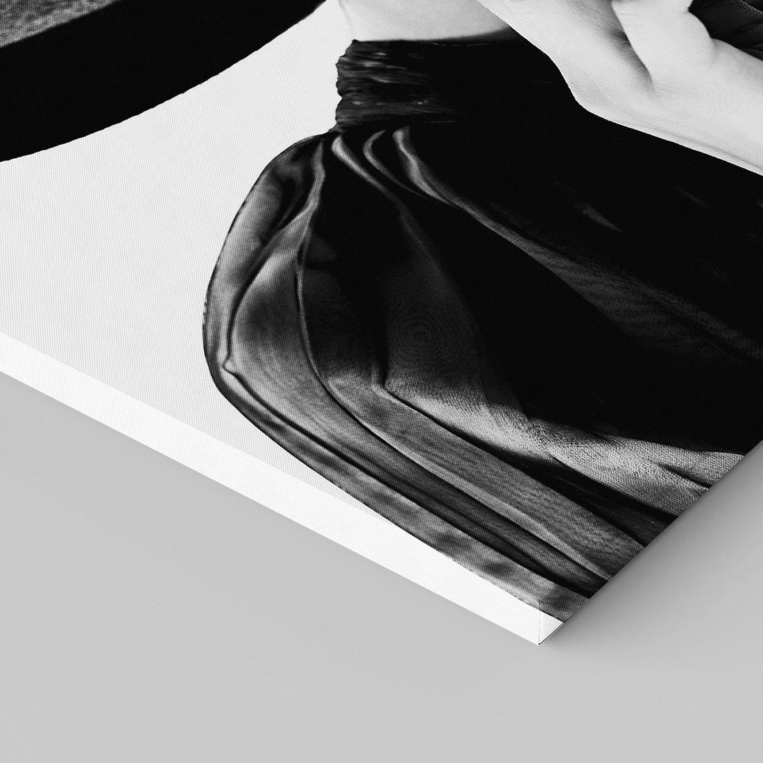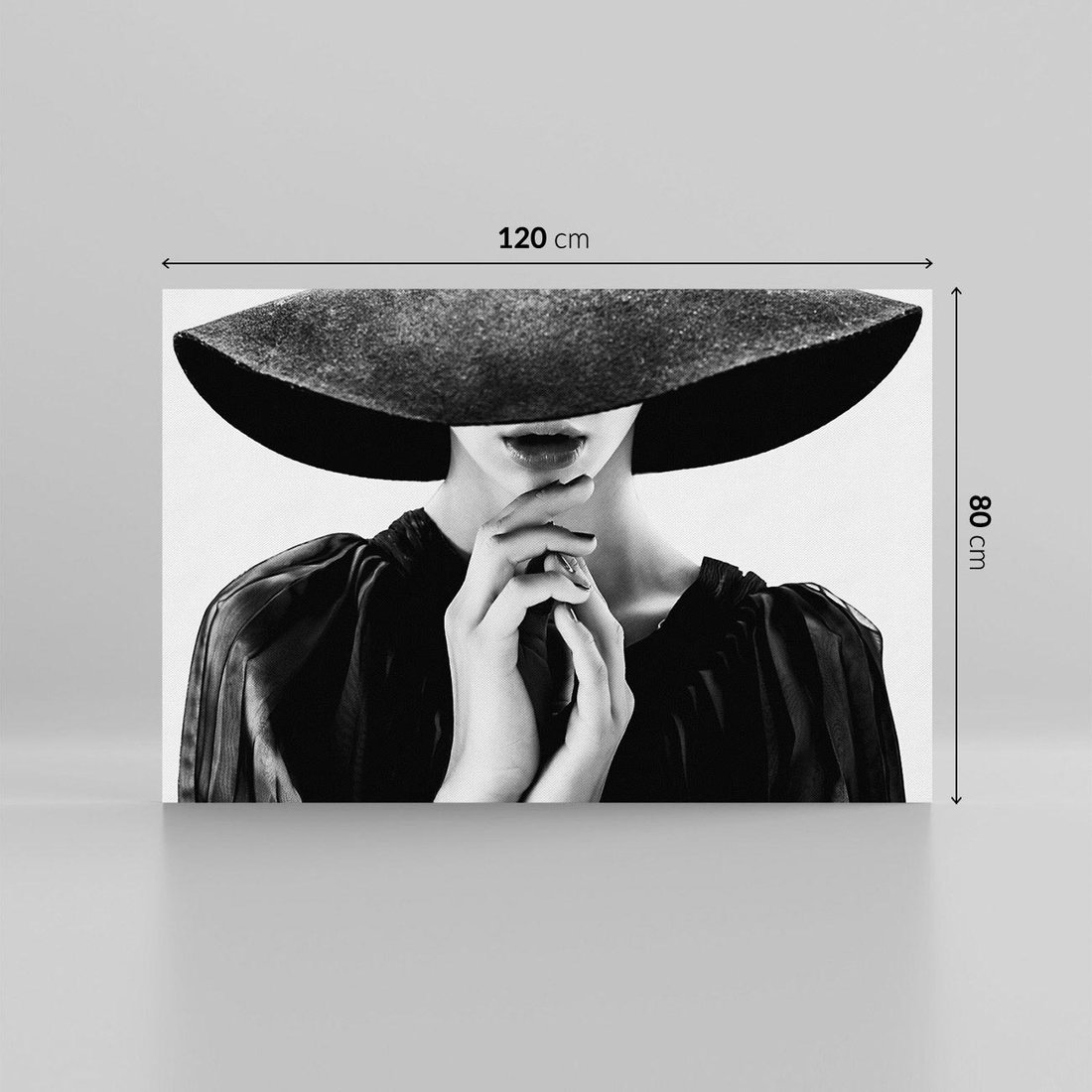 Obraz na płótnie 120x80 - Czarna Elegancja - fotografia czarno biała, zbliżenie portret kobiety w czerni