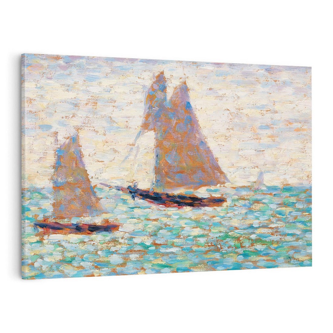 - Obraz na płótnie 120x80 - "Dwie Żaglówki w Grandcamp" (1885) Georges Seurat - Reprodukcja