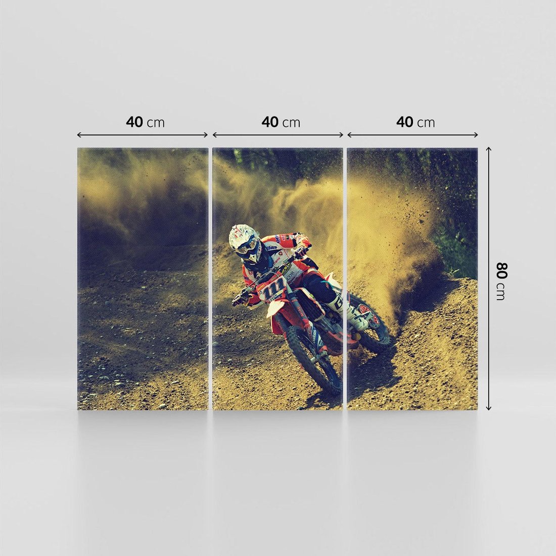 Ta malarska kompozycja przedstawia crossowy motocykl, który wykonuje spektakularne skoki i akrobacje. Poczuj ducha adrenaliny i ekscytacji, odkrywając świat off-roadowych przygód. Przenieś to motocyklowe szaleństwo na swoje ściany, wprowadzając energię i pasję sportu motocrossowego.