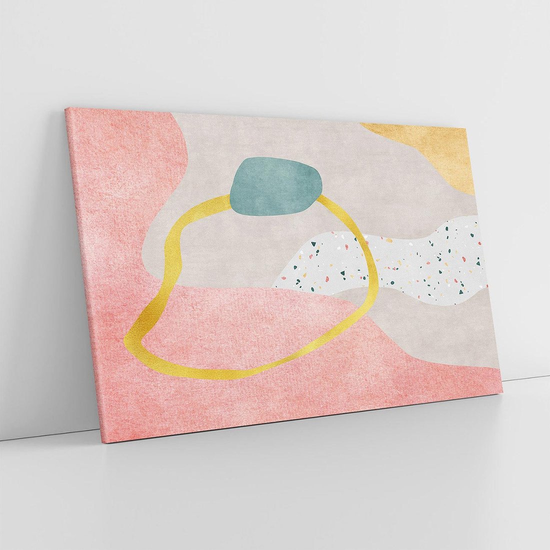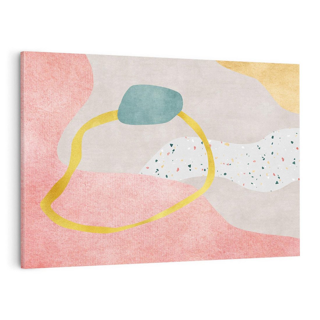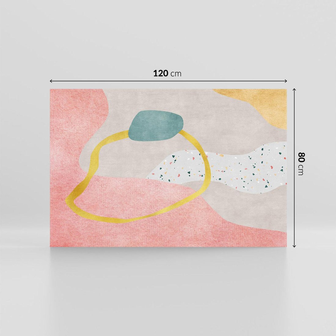 Odkryj fascynujący obraz abstrakcji, łączący kształty i dziwne formy, które harmonijnie współgrają z różnymi teksturami, przypominającymi lastryko. Złote akcenty subtelnie podkreślają różowy i szary kolor. To wyjątkowe dzieło stworzone dla miłośników sztuki poszukujących unikalnych kompozycji, które wzbudzą ciekawość i zachwyt. Doskonały dodatek do nowoczesnych i ekskluzywnych wnętrz.