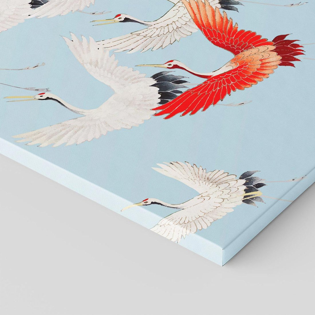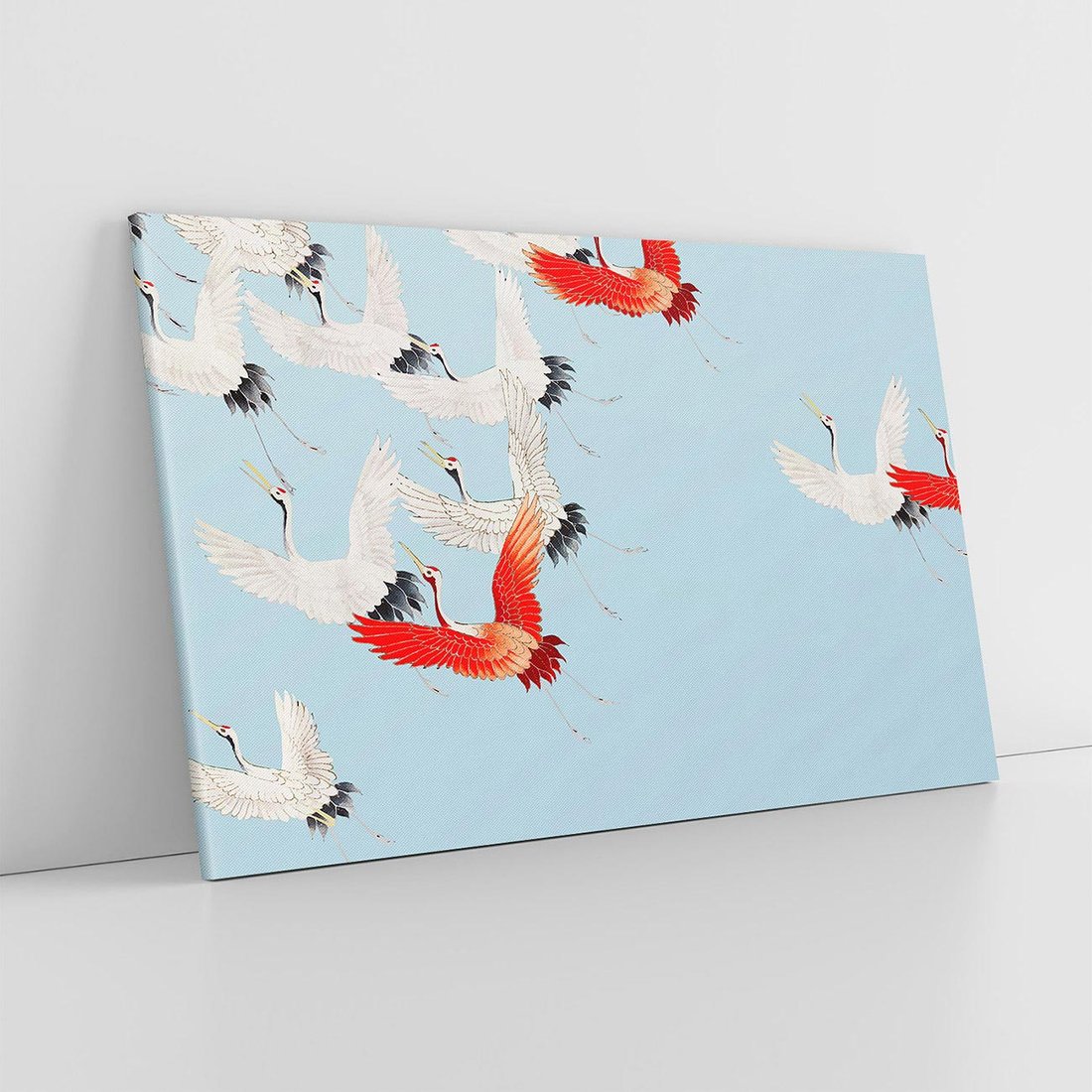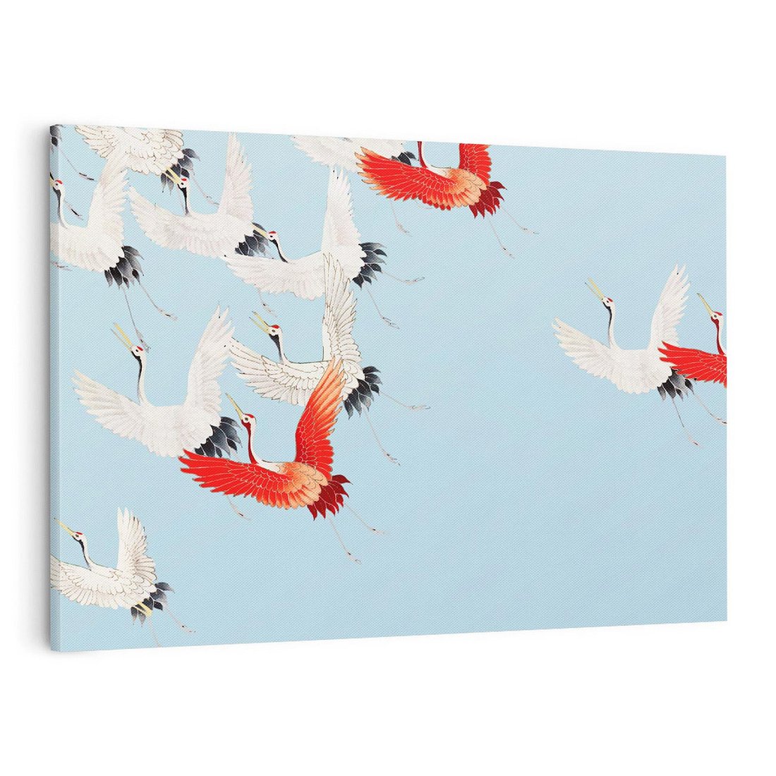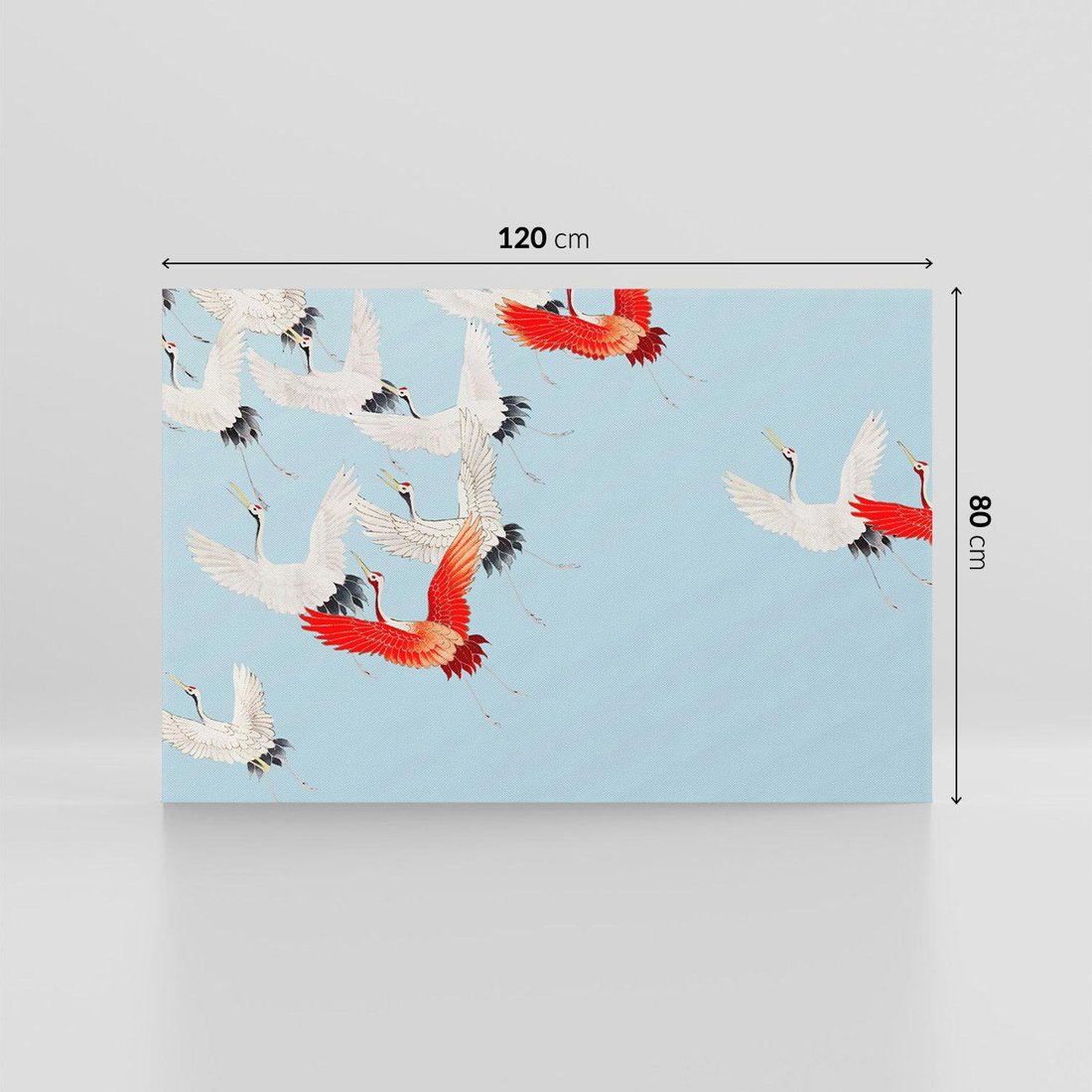 Obraz na płótnie 120x80 - Eteryczne Żurawie - lecące żurawie, orientalna sztuka