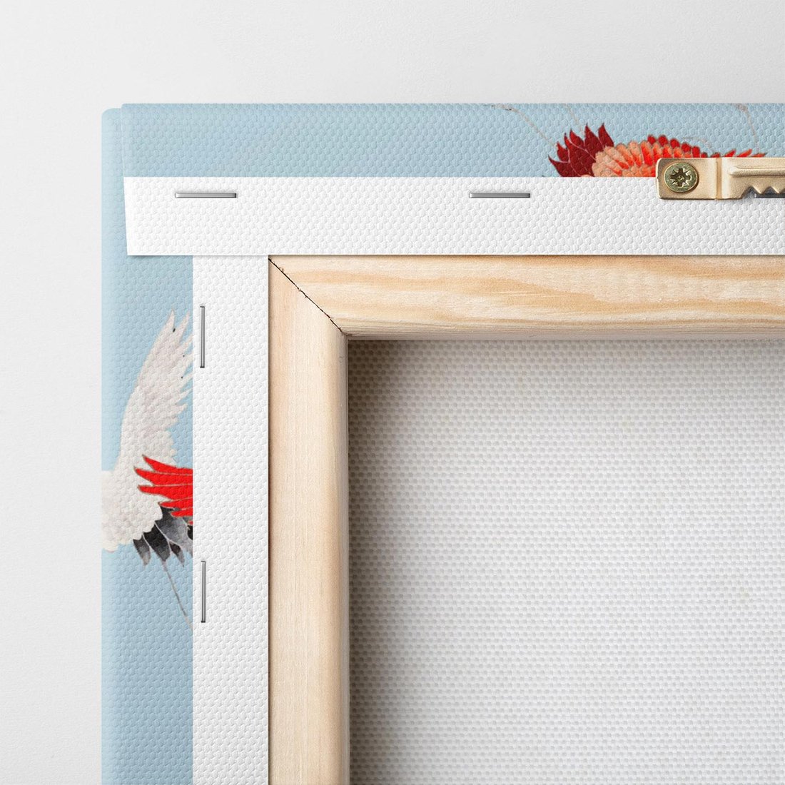 Ten abstrakcyjny obraz ukazuje lecące żurawie nad tajemniczym błękitnym tłem, wprowadzając nas w transcendentalną podróż do orientalnych przestrzeni. Ich figury wydają się niematerialne, jakby emanowały duchową energią, która przenika całą kompozycję, wciągając nas w mistyczną opowieść.