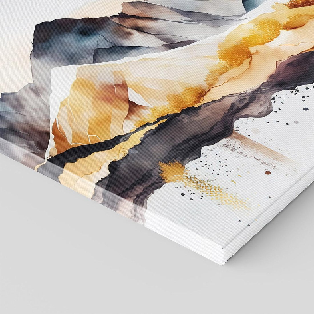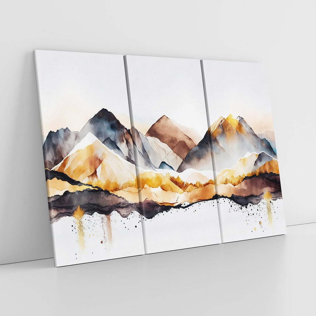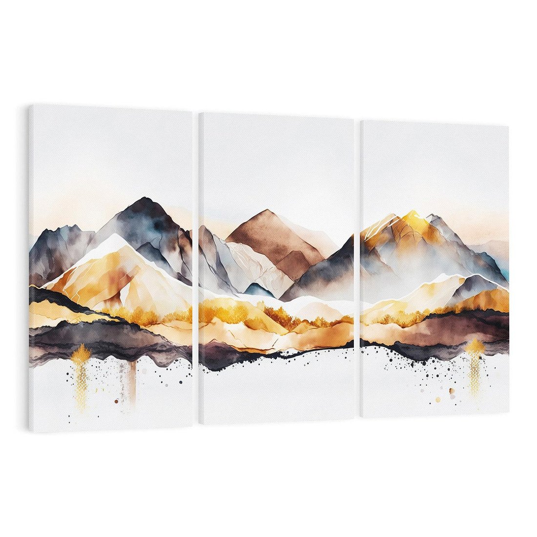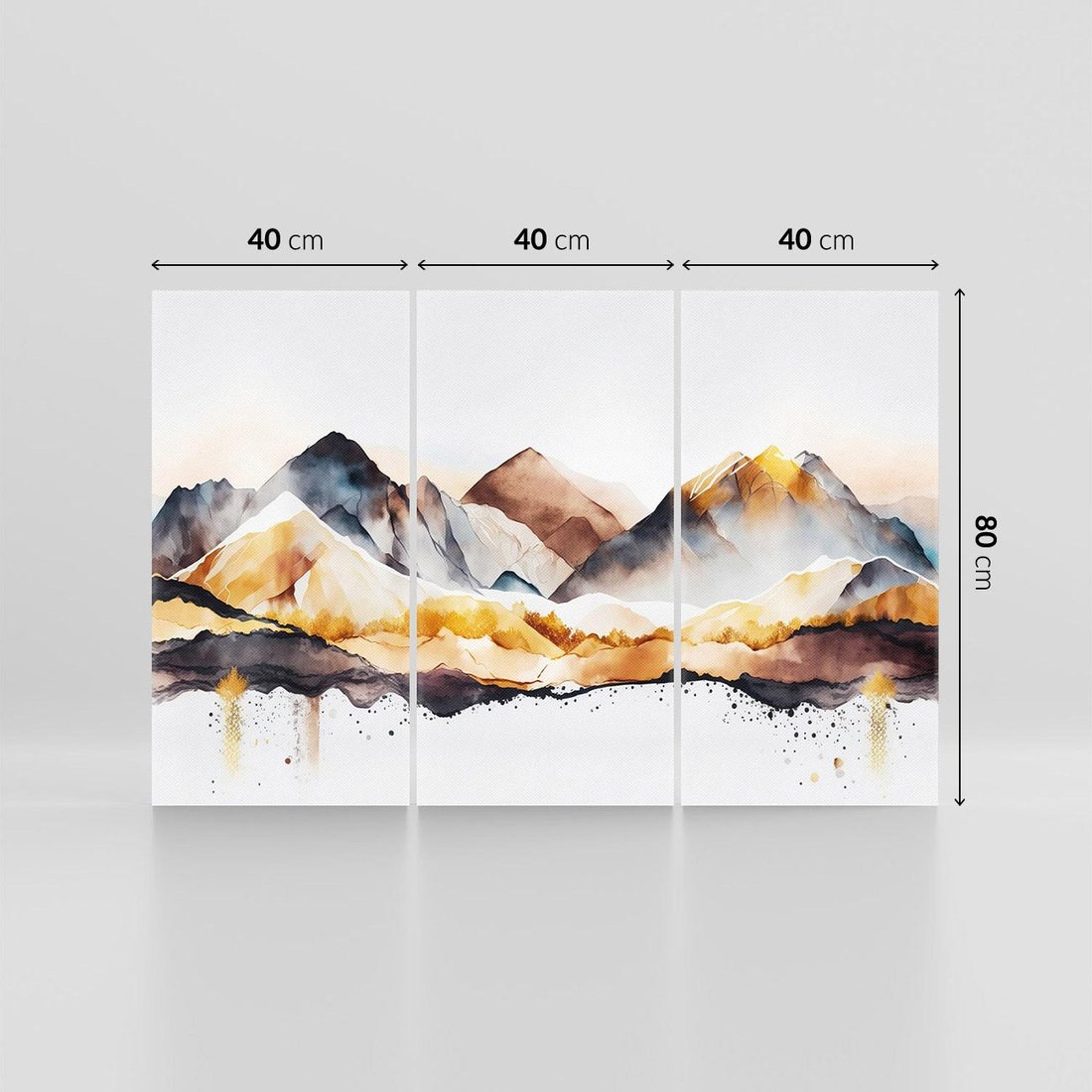 To nowoczesne dzieło sztuki przedstawia krajobraz gór ze złotymi akcentami na jasnym białym tle. Szarość dodaje subtelności i głębi, podkreślając wyjątkowy charakter kompozycji. Złote detale nadają elegancji i piękna temu krajobrazowi, który wzbogaci jasne wnętrza i wniesie harmonię do przestrzeni.