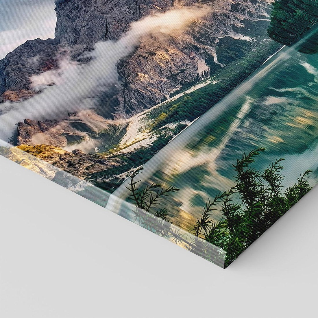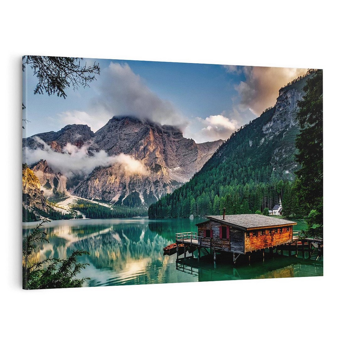 Przeniknij do urokliwej scenerii górskiego domku położonego nad malowniczym strumykiem. Ten obraz na płótnie przeniesie Cię w świat harmonii natury, wprowadzając do Twojego wnętrza atmosferę relaksu i spokoju.