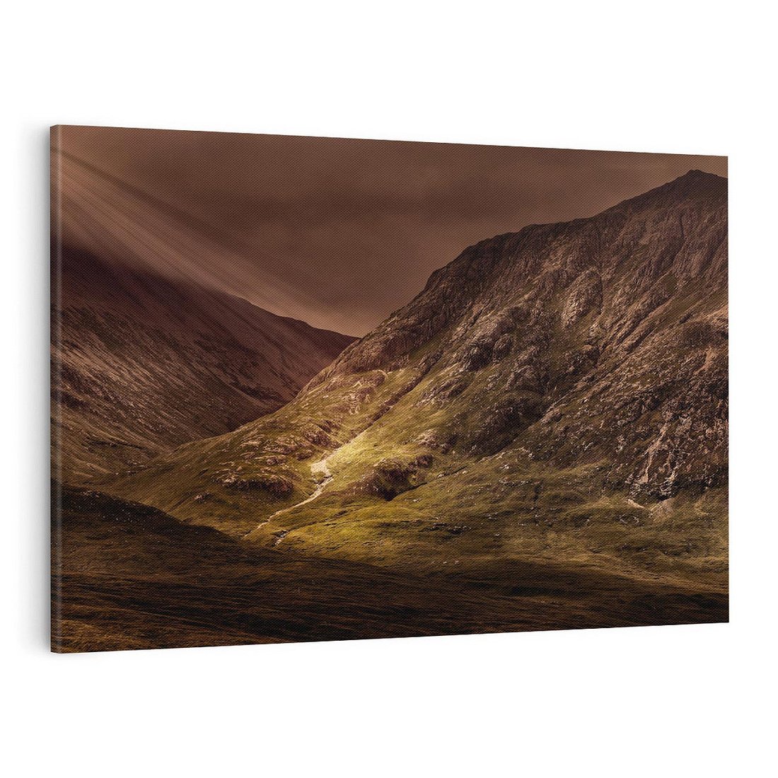 Przeniknij w piękno górskiej natury dzięki temu malowniczemu obrazowi przedstawiającemu górską scenerię. Wznoszące się szczyty, malownicze doliny i soczysta roślinność tworzą harmonijną aurę. Ten obraz dodaje świeżości i spokoju, idealny dla miłośników górskich widoków i chcących wprowadzić do swojego wnętrza naturalny klimat górskiej scenerii.