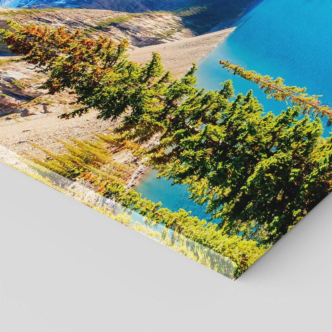 Ożyw swoje wnętrze tym uroczym obrazem przedstawiającym górskie jezioro. Niebieska woda, majestatyczne góry i spokojna atmosfera tworzą harmonijną aurę. Ta kompozycja dodaje świeżości i wyciszenia, idealna dla miłośników przyrody i pragnących wprowadzić naturalną harmonię do swojego wnętrza.