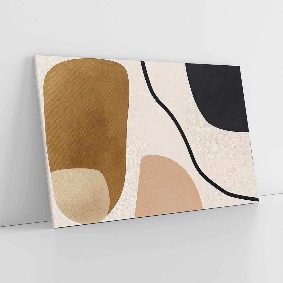 Odkryj niezwykły obraz przedstawiający abstrakcyjne kształty w odcieniach beżu i brązu, z akcentami czerni. W stylu boho, to dzieło sztuki emanuje naturalnym pięknem. Stworzone dla miłośników kreatywności i artystycznego wyrazu, pragnących wprowadzić do swoich wnętrz oryginalny i wyrafinowany akcent. Doskonały sposób na podkreślenie charakteru i wyjątkowości każdej przestrzeni.
