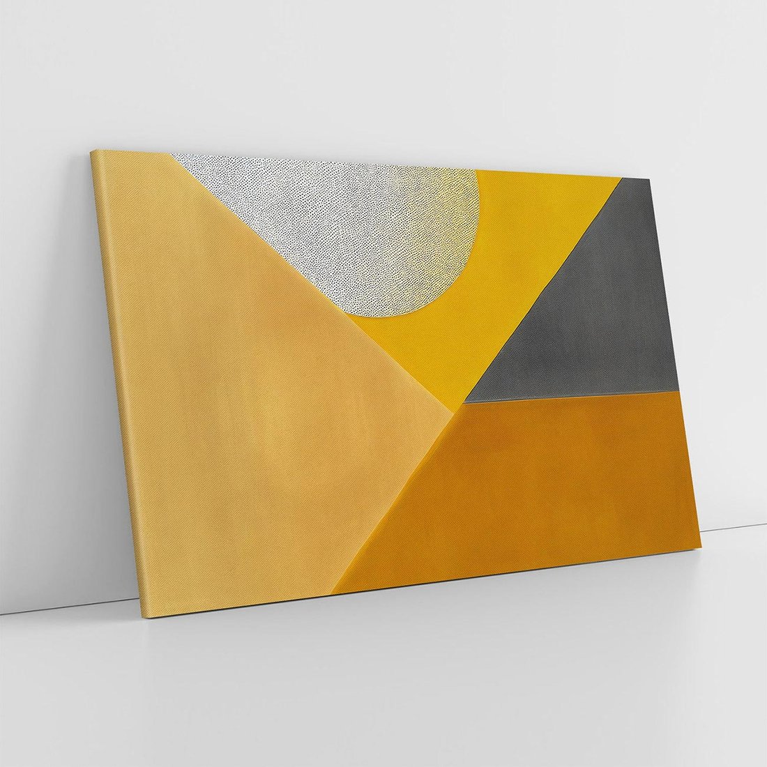 Zanurz się w intensywnych ciepłych kolorach tego obrazu, gdzie dominuje słoneczny żółty. Geometryczny podział płótna tworzy dynamiczną kompozycję kształtów. To dzieło sztuki w stylu nowoczesnym, stworzone dla miłośników ekspresyjnej estetyki i artystycznej wyrazistości. Doskonały akcent dla tych, którzy pragną wprowadzić do swoich wnętrz energię i wyrazistą ekspresję.