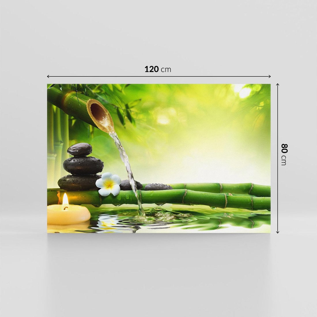 - Obraz na płótnie 120x80 - Harmonia natury: Bambus, woda, kamienie