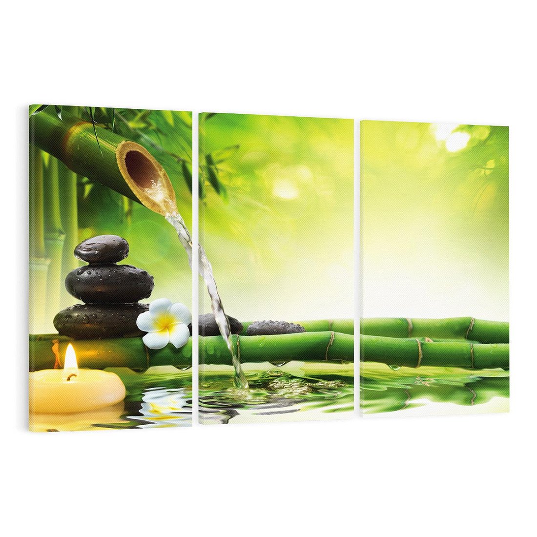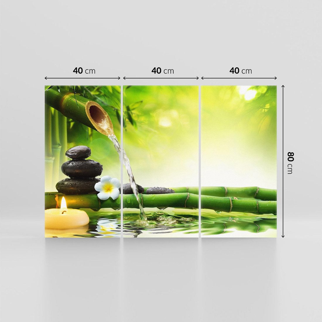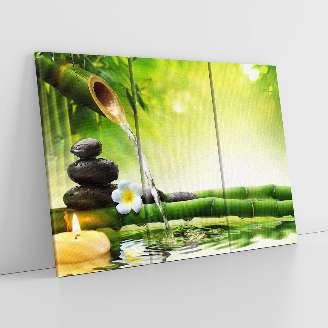 Ożyw swoje wnętrze tym uroczym obrazem przedstawiającym harmonię natury. Delikatne liście bambusa, spokojnie spływająca woda i ułożone kamienie tworzą relaksacyjną atmosferę. Ta kompozycja dodaje równowagi i spokoju, idealna dla osób pragnących stworzyć w domu oazę harmonii i zen.