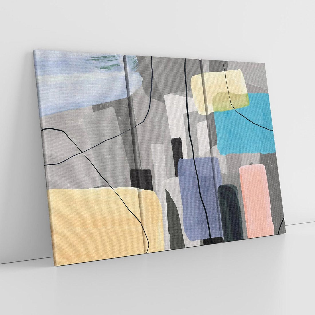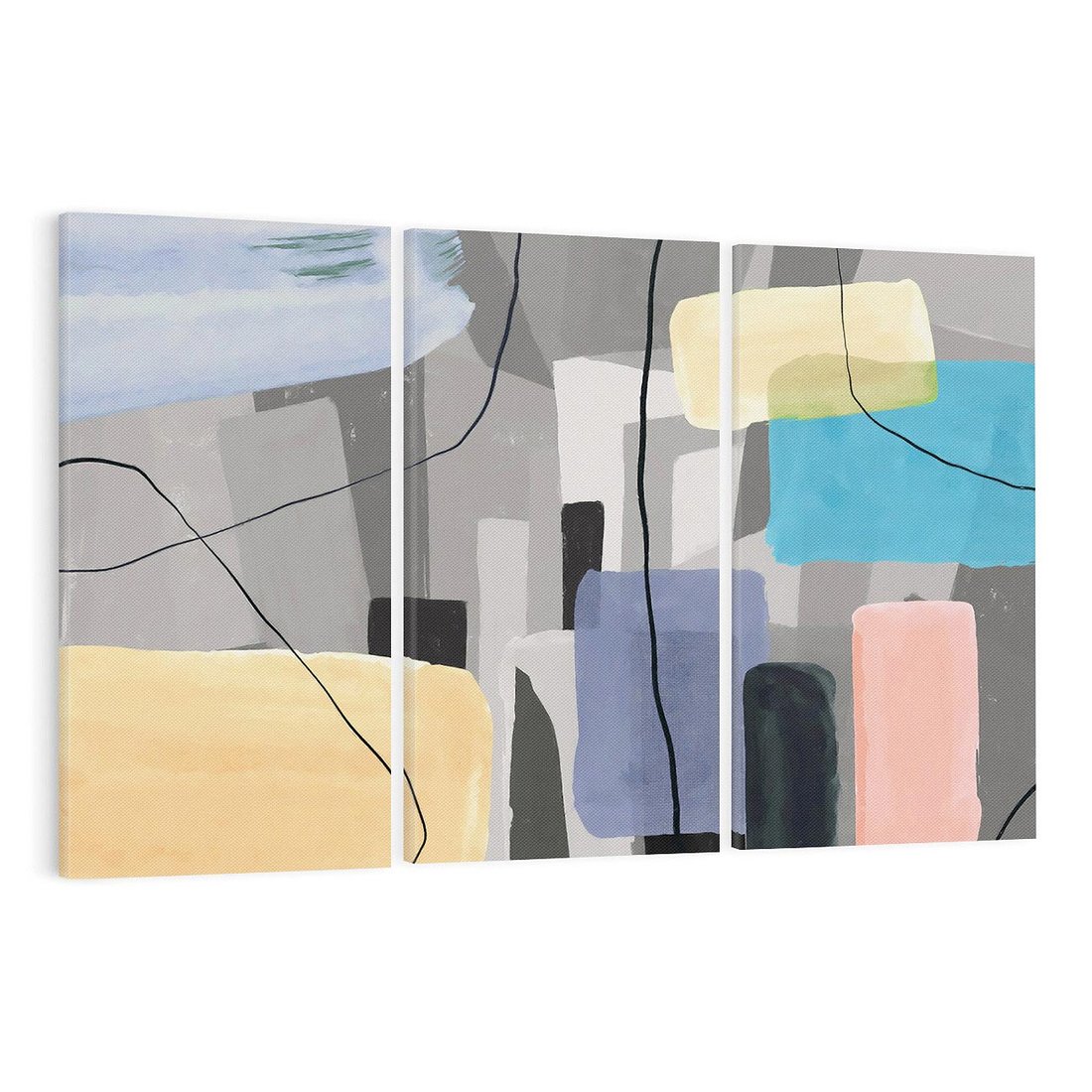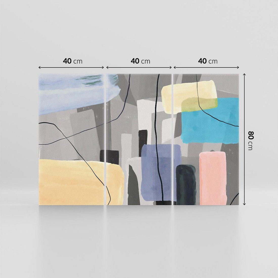 Odkryj wyjątkowy obraz w stylu retro sztuki, który przedstawia abstrakcję na szarym tle. Kolorowe plamy koloru i geometryczne prostokąty tworzą dynamiczną kompozycję. Czarne linie i kreski dodają mu charakterystycznego retro wyrazu. To dzieło sztuki stworzone dla miłośników unikalnych kompozycji i artystycznego ekspresjonizmu. Doskonały akcent dla przestrzeni pragnących zachwycić retro estetyką.