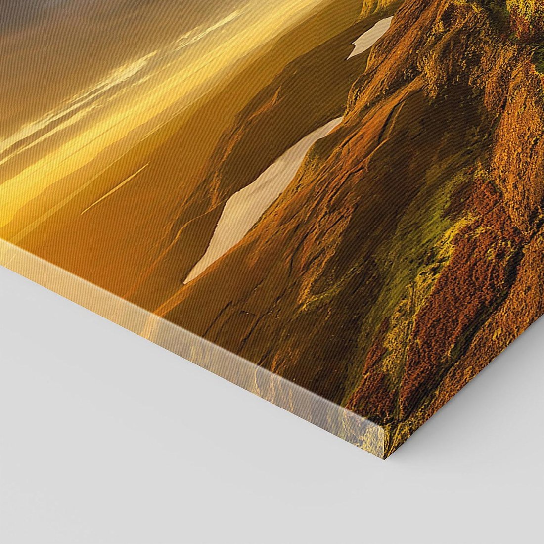 Przedstawienie urokliwego krajobrazu górskiego, pełnego malowniczych wzniesień i zielonych dolin. To obraz, który ożywi przestrzeń i dodaje naturalnego piękna.