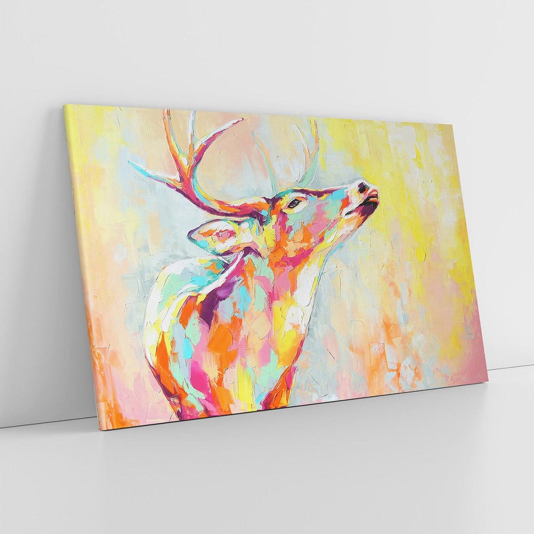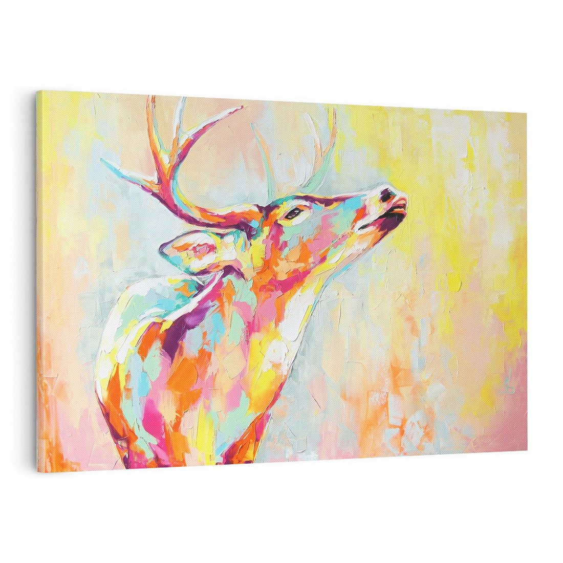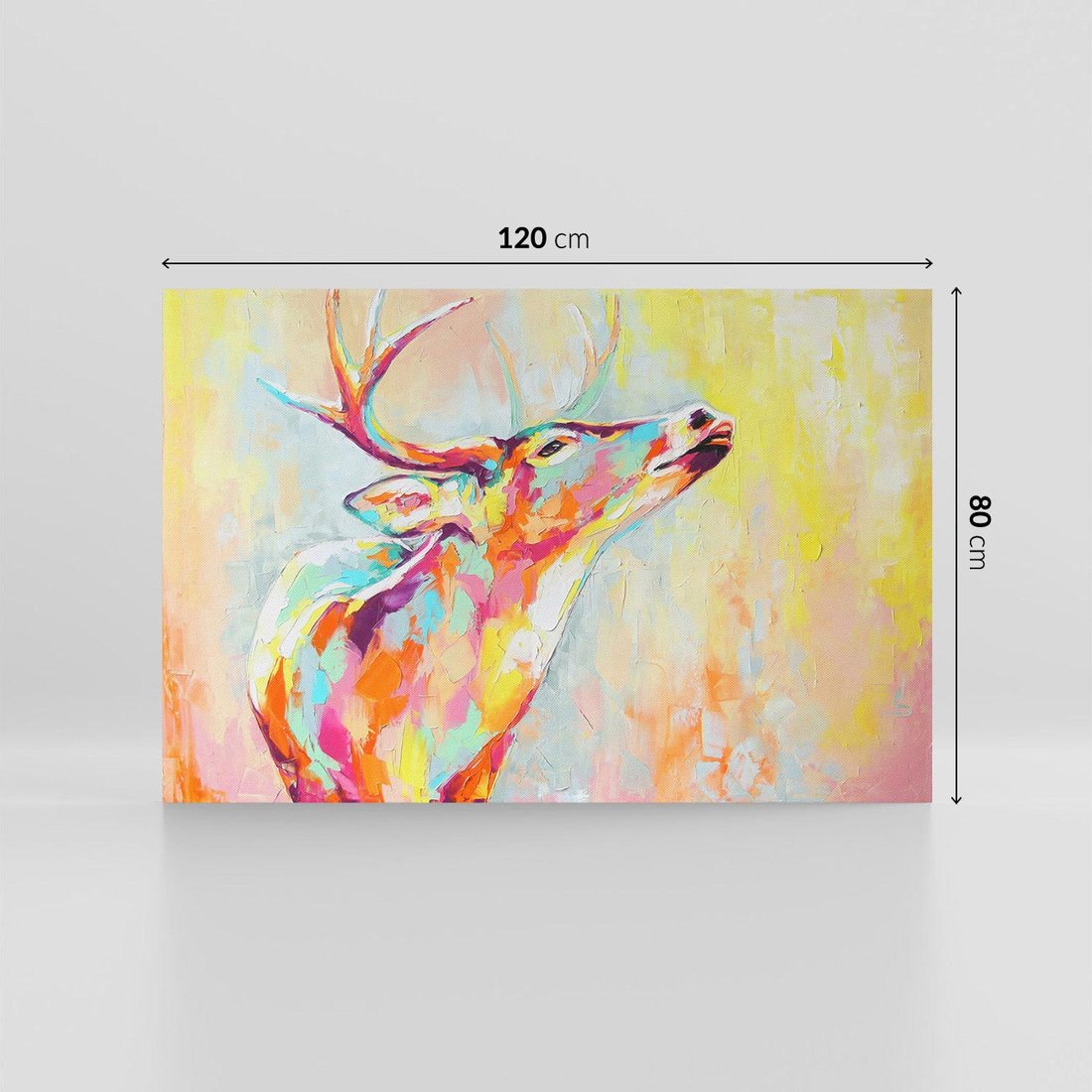 Obraz na płótnie 120x80 - Impresje snów malarza - kolorowy olejny obraz, jeleń ryczący na rykowisku