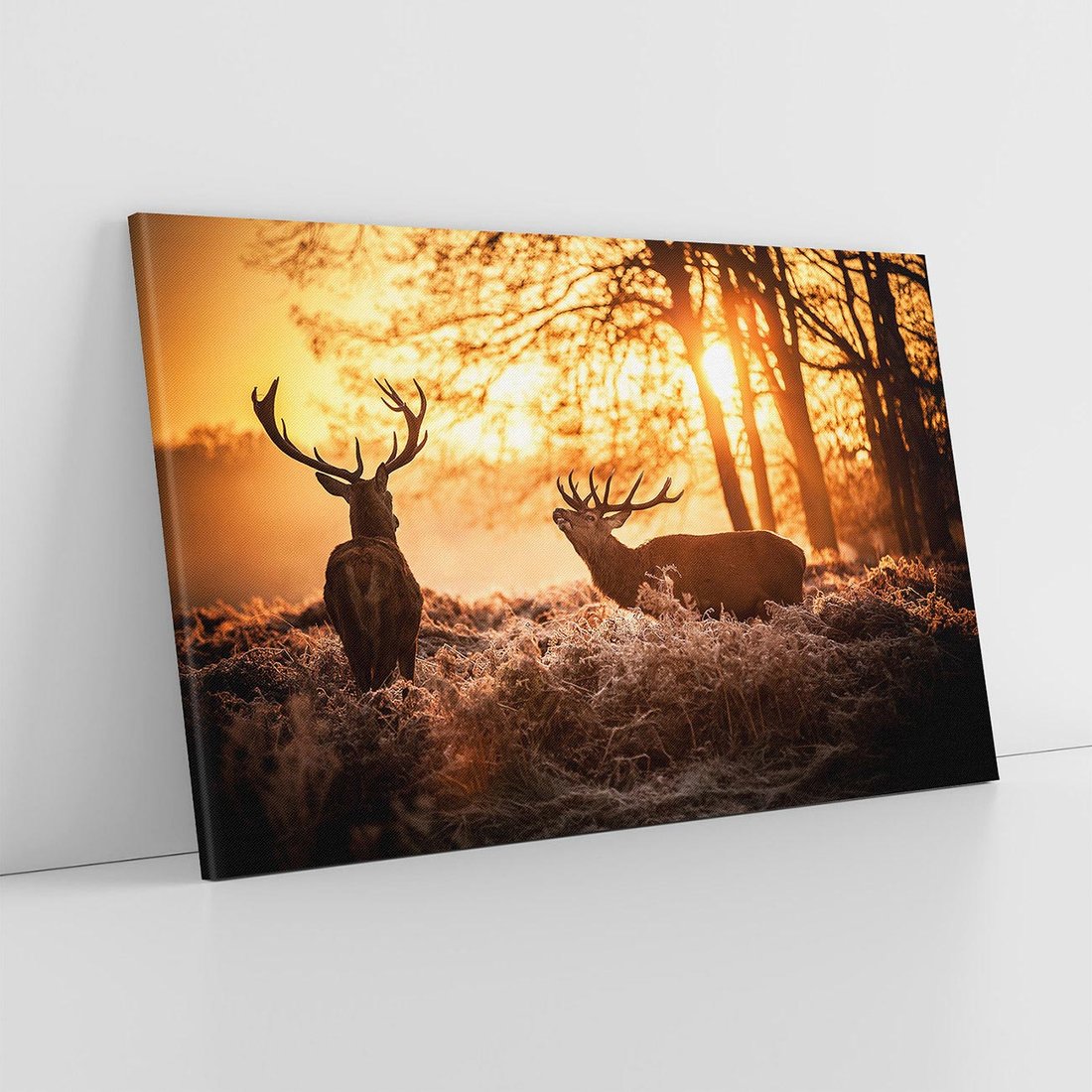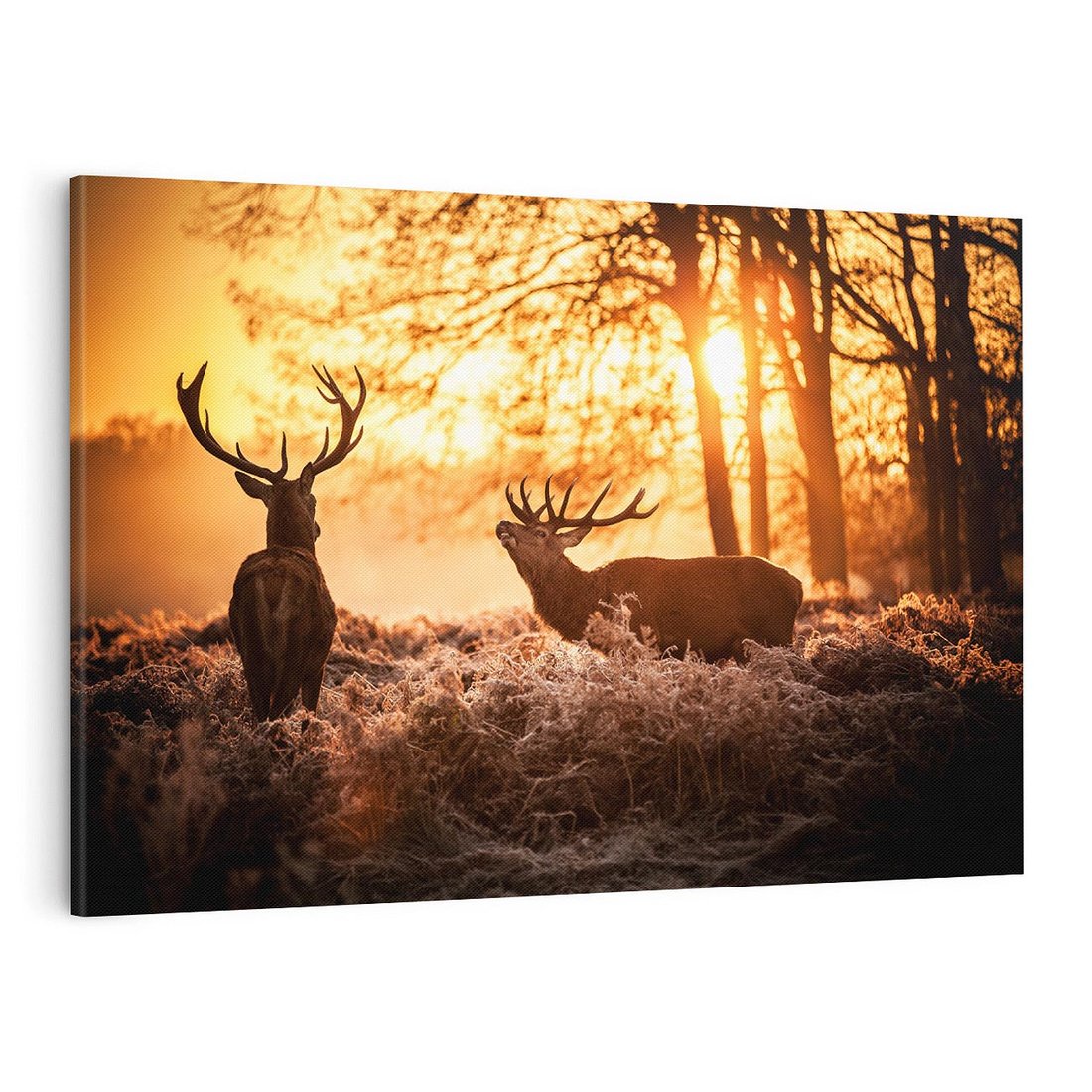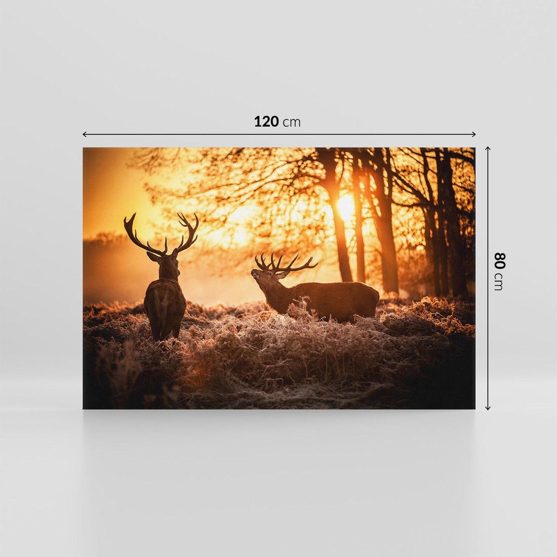 - Obraz na płótnie 120x80 - Jeleń w lesie: Spotkanie w dziczy