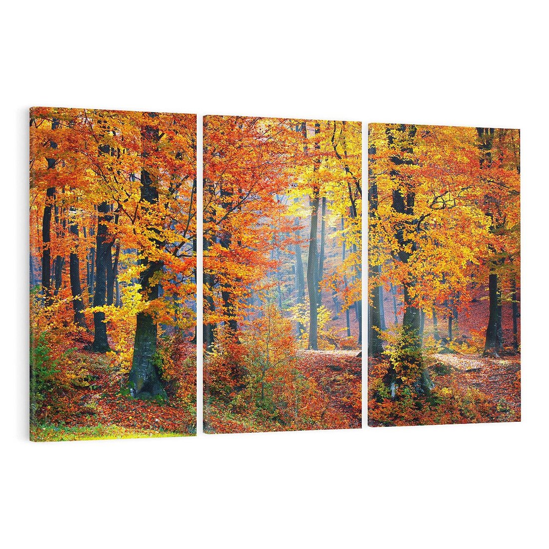 Ten urokliwy obraz przeniesie Cię w magiczny świat jesiennego lasu, gdzie drzewa ożywają kolorami i delikatnym szumem liści. Kompozycja na płótnie wyraża piękno i harmonię natury w pełnym rozkwicie. Dodaj do swojego wnętrza nutę jesiennej magii tym wyjątkowym obrazem.
