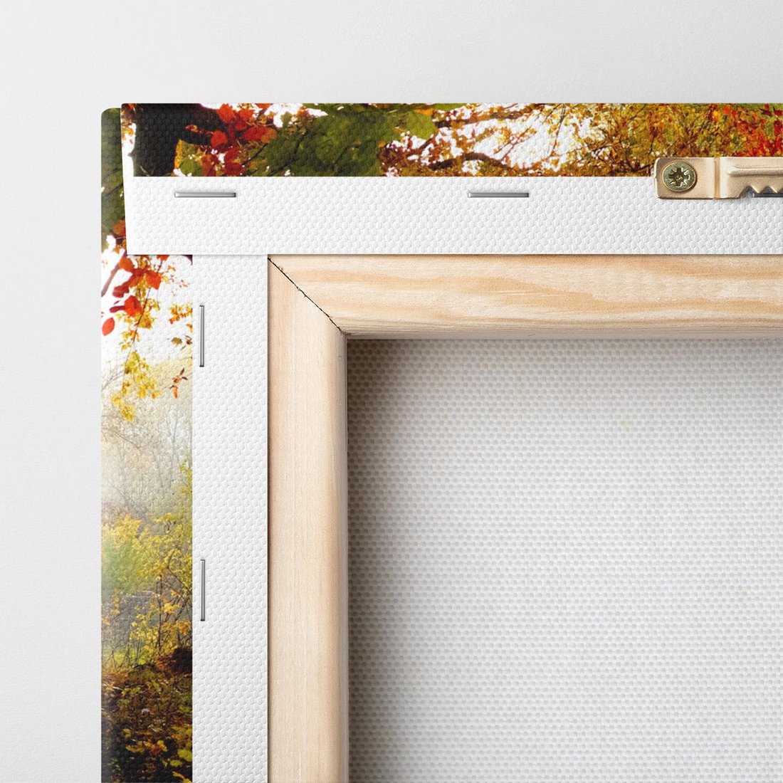 zenieś się w jesienny urok dzięki temu obrazowi przedstawiającemu kolorowe lasy. Spadające liście, złote światło i tajemnicza atmosfera tworzą niesamowitą wizję. Ta kompozycja dodaje ciepła i głębokiej fascynacji jesienią, idealna dla miłośników jesiennych krajobrazów i przytulności natury.