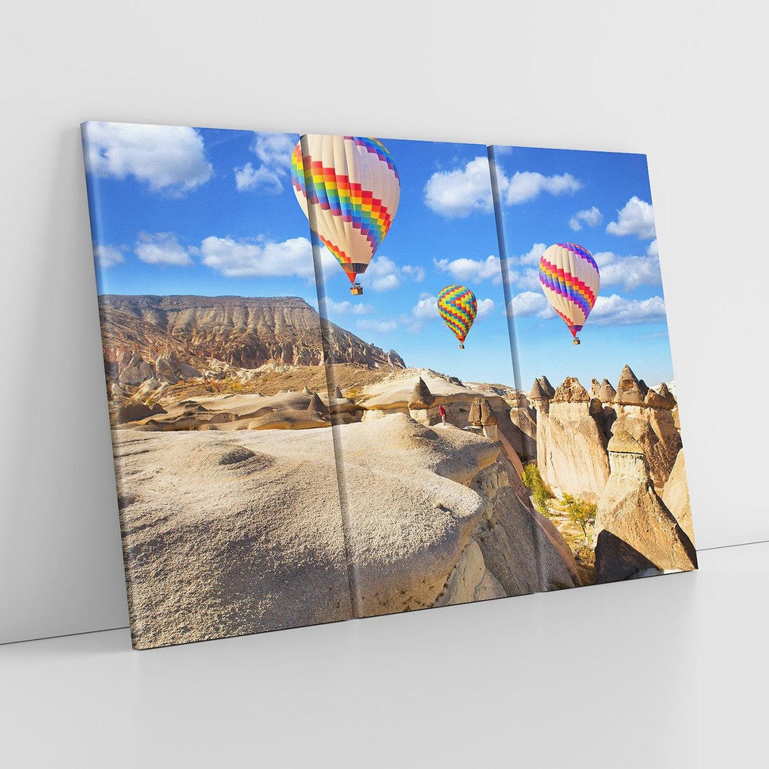 Odkryj magiczne piękno Turcji dzięki temu malowniczemu obrazowi przedstawiającemu kolorowe balony unoszące się nad krajobrazem. Intensywne kolory, niebo pełne balonów i malownicze widoki tworzą niezapomnianą atmosferę. Ta kompozycja dodaje radości i podróżniczego ducha, idealna dla miłośników podróży i piękna świata.