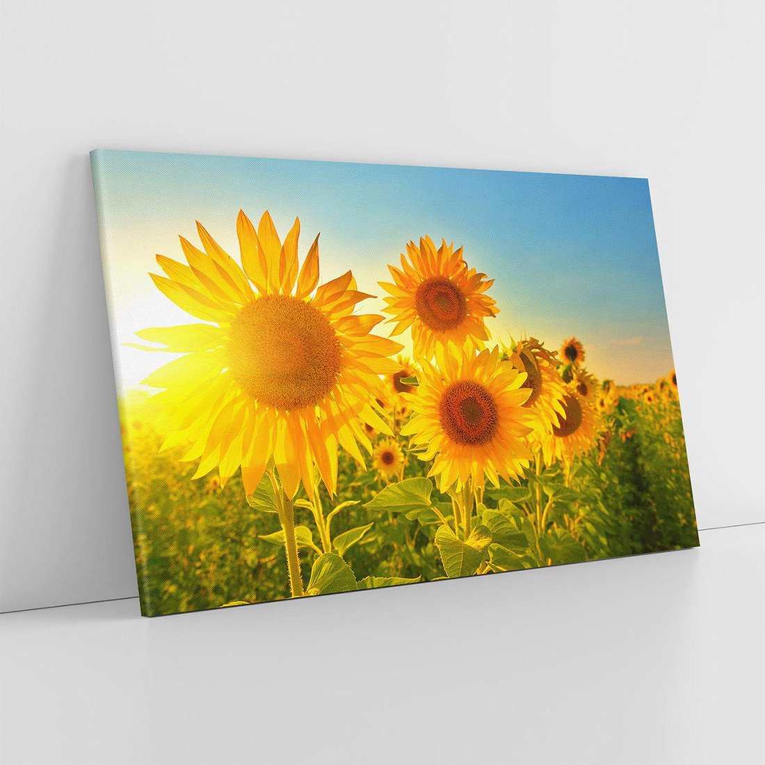 Obraz na płótnie 120x80 - kolorowe promienie - słoneczniki, kwiaty
