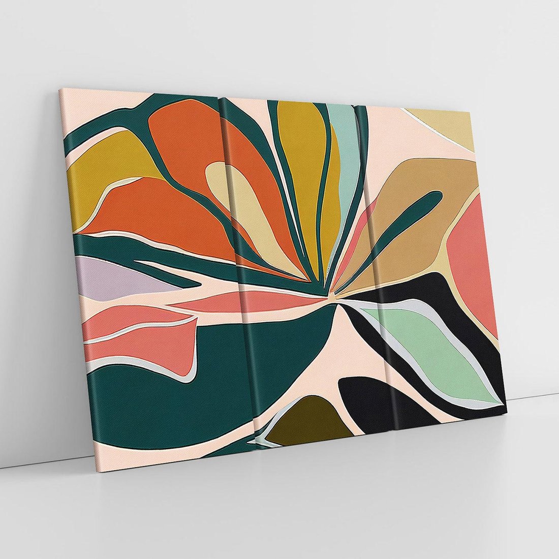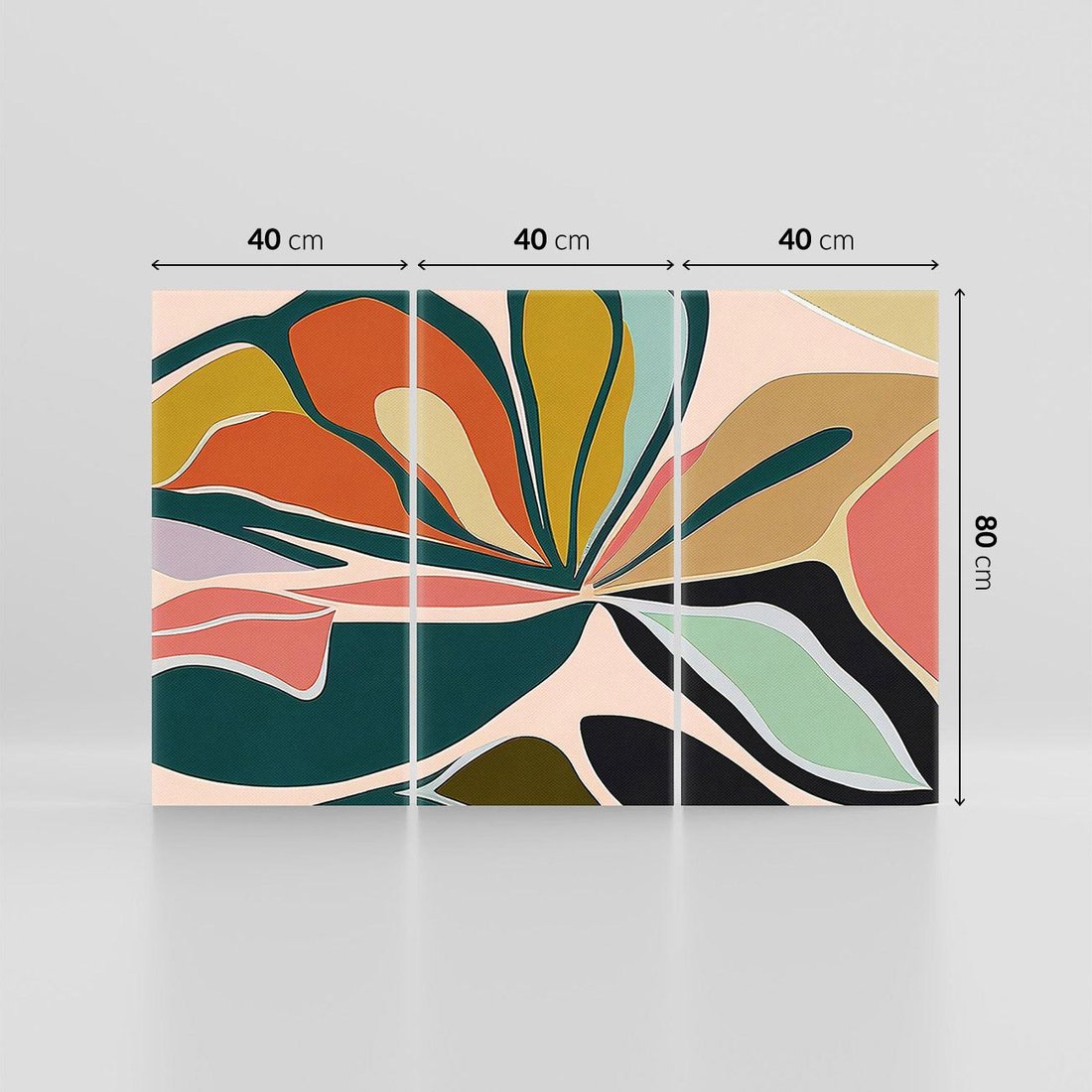 Olejny obraz z dynamiczną abstrakcją w kształcie kwiatu. Żywe kolory wprowadzają wrażenie naturalnych barw ziemi, nadając mu ciepły i przyjemny wygląd. Wyraziste i harmonijne połączenie form tworzy unikalne dzieło sztuki, które przyciąga wzrok i dodaje wnętrzom wyjątkowego charakteru.