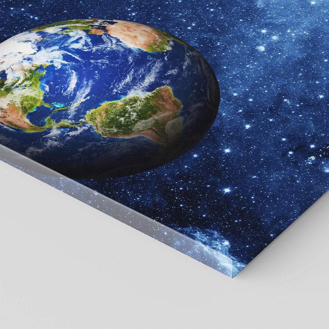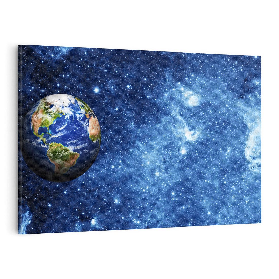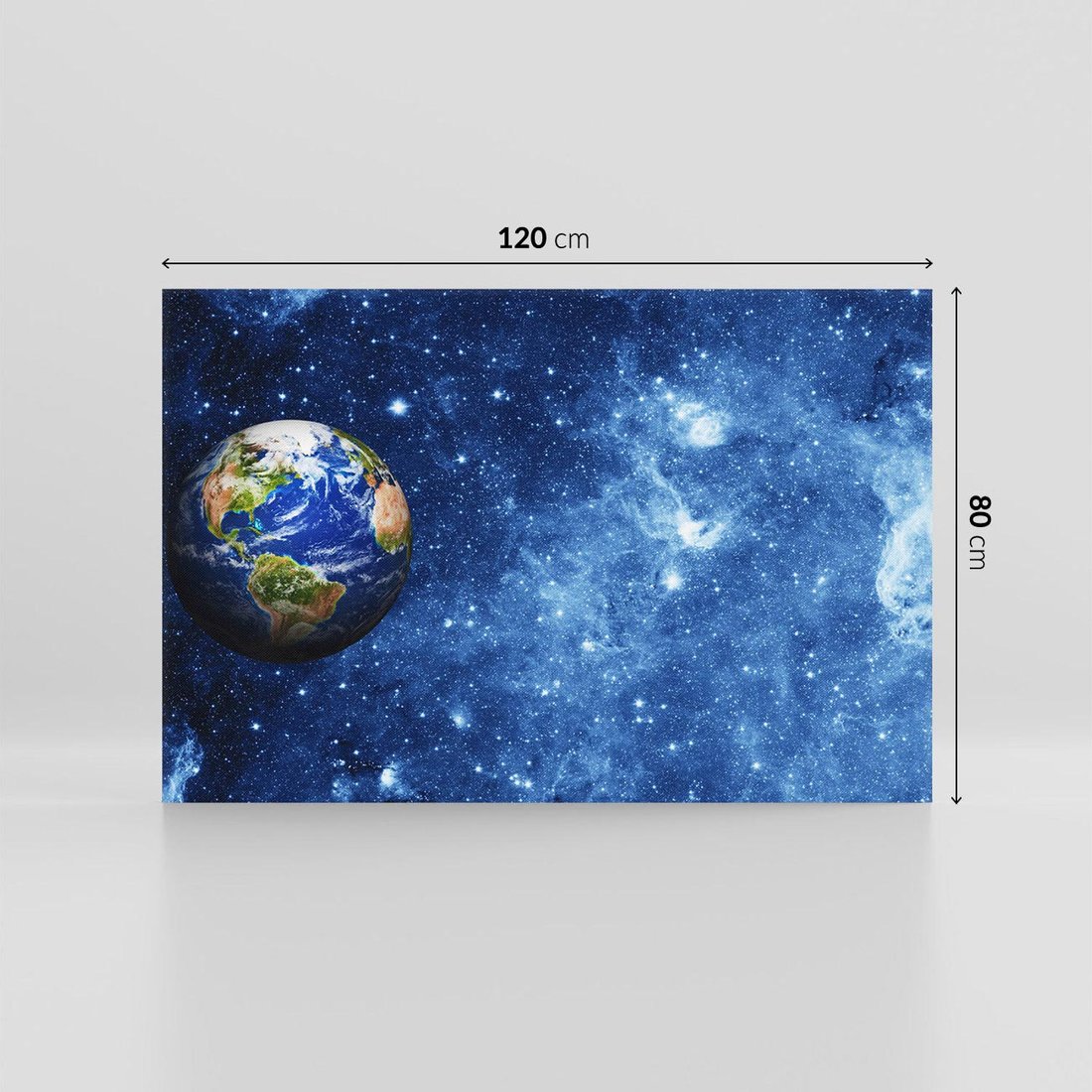 Ten fascynujący obraz na płótnie zaprasza Cię w podróż kosmiczną na Ziemię. Jego tajemnicze przestrzenie, planety i gwiazdy oddają niezmierzoną wielkość kosmosu. Odkryj piękno naszej planety i dodaj odrobinę kosmicznego uroku do swojego wnętrza.