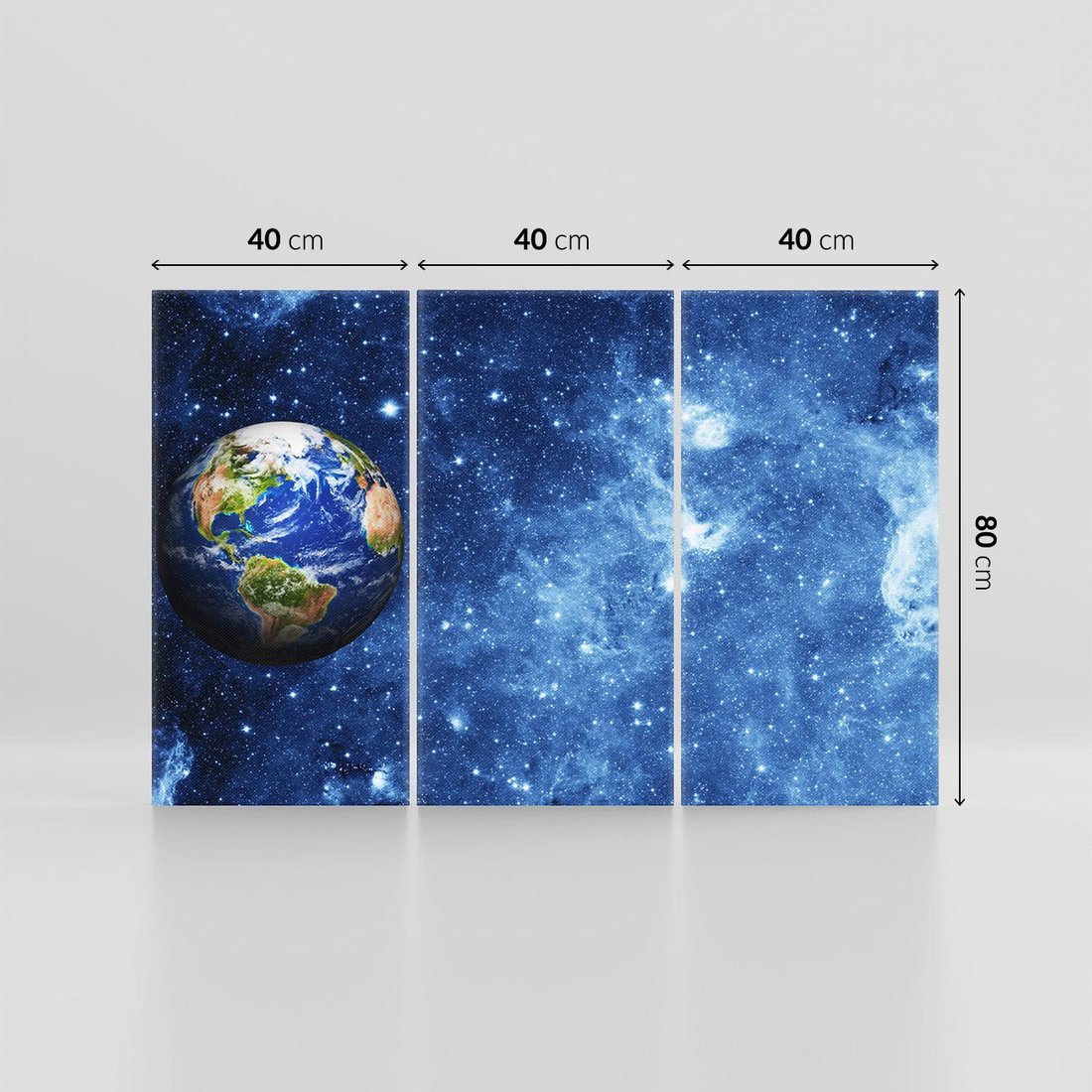 Ten fascynujący obraz na płótnie zaprasza Cię w podróż kosmiczną na Ziemię. Jego tajemnicze przestrzenie, planety i gwiazdy oddają niezmierzoną wielkość kosmosu. Odkryj piękno naszej planety i dodaj odrobinę kosmicznego uroku do swojego wnętrza.