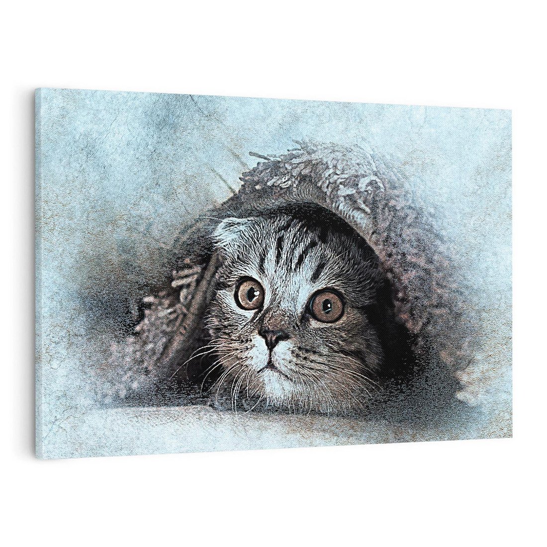 Ten obraz na płótnie łączy urok kota z abstrakcyjnym otoczeniem. Gra świateł i cieni, dynamiczne pociągnięcia pędzla oraz intensywne kolory tworzą unikalną atmosferę, która wzbogaci Twoje wnętrze o artystyczną głębię.