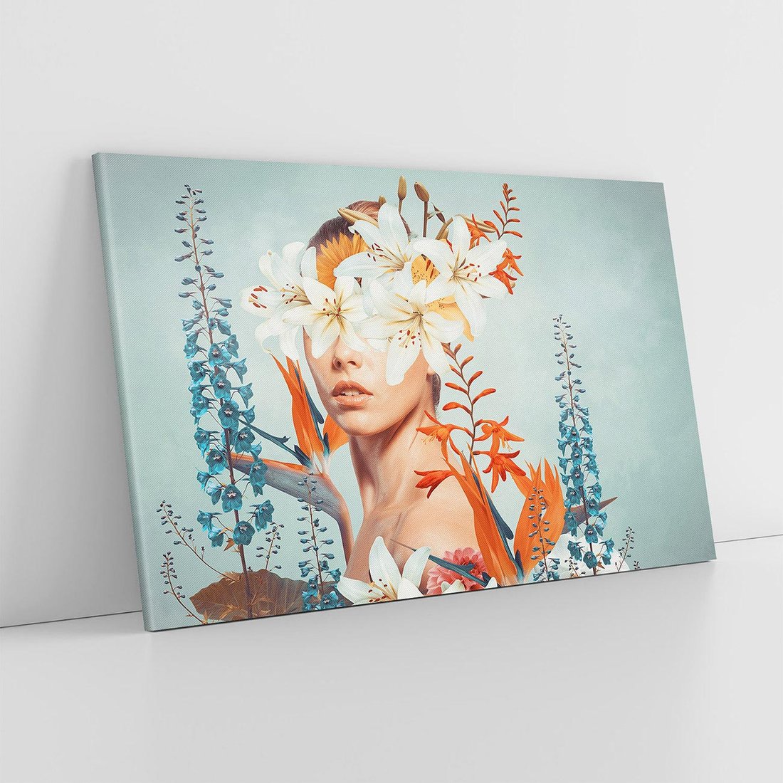 Obraz na płótnie 120x80 - Kwiatowa Enklawa Uroku - kolaż, nierealna kompozycja