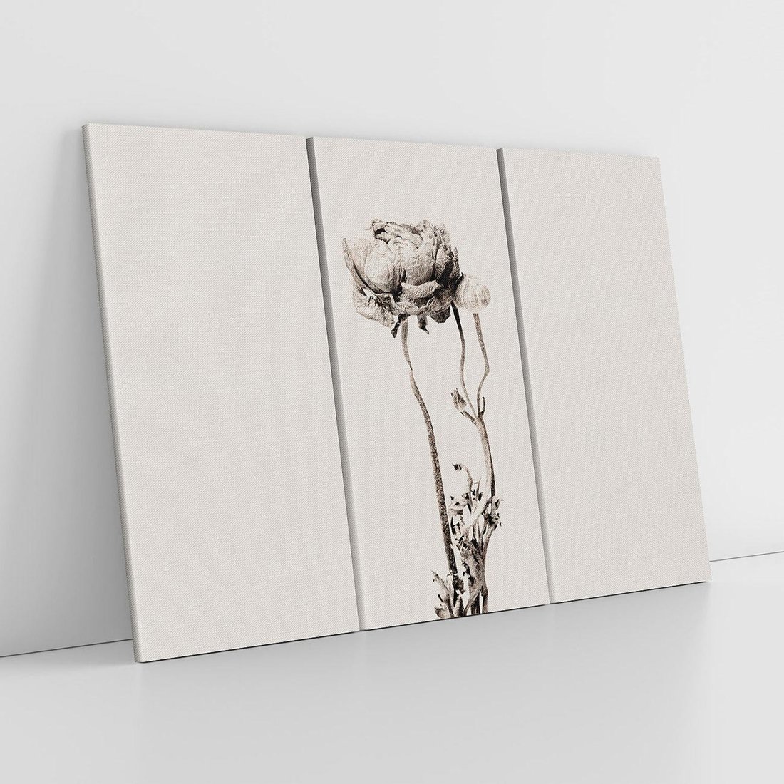 Odkryj minimalistyczne piękno tego czarno-białego obrazu na płótnie, który prezentuje kwiatową symfonię w odcieniach szarości. Beżowe tło podkreśla delikatność i elegancję tego nowoczesnego dzieła sztuki.