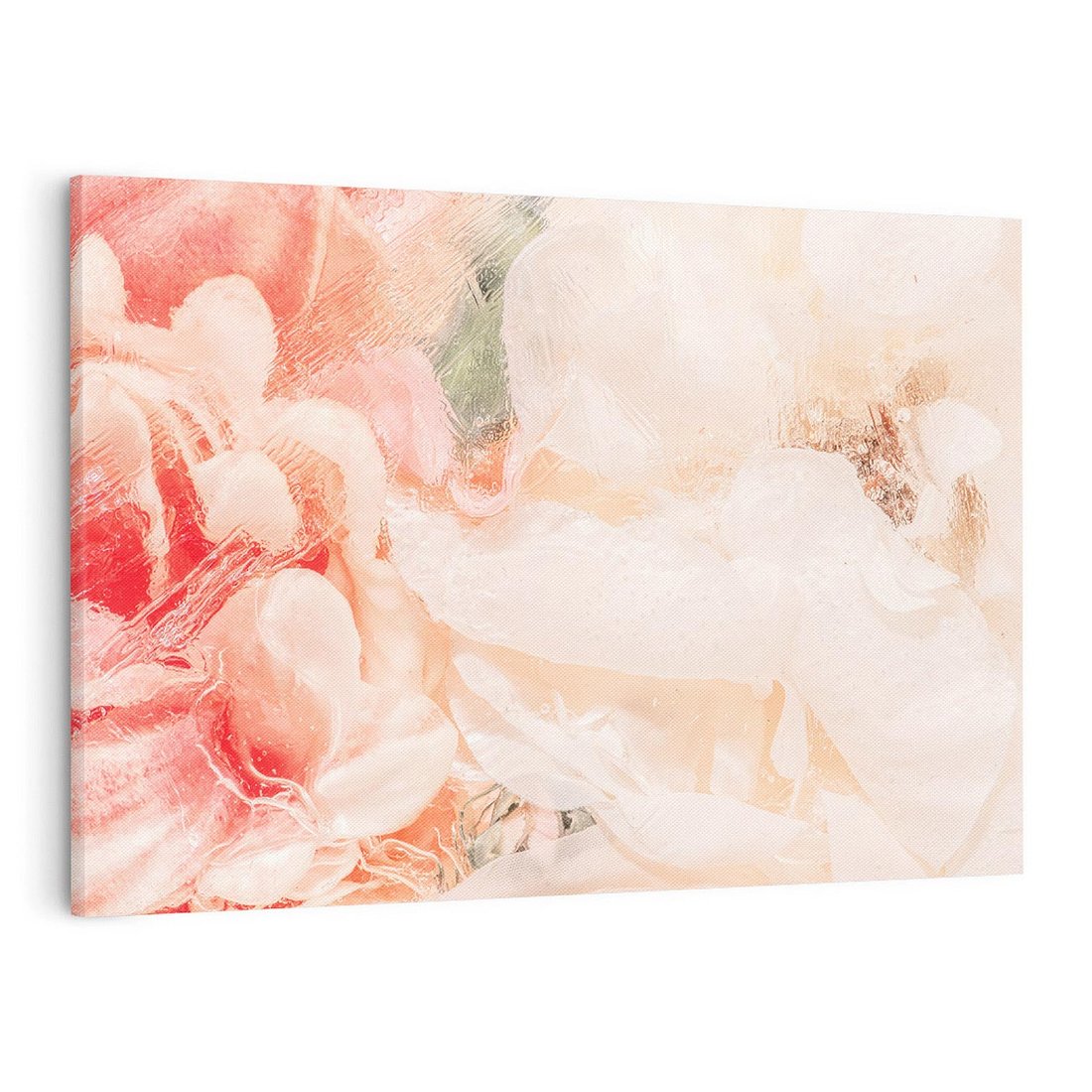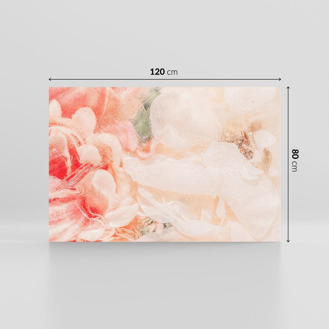 To wyjątkowa abstrakcja, która subtelnie przywodzi na myśl piękno kwiatów, zwłaszcza róż. Pudrowe kolory harmonijnie się splatają, tworząc spokojny i elegancki klimat. To dzieło sztuki emanuje delikatnością i wyrafinowanym wdziękiem, idealnie wpisując się w przestrzenie, gdzie poszukiwany jest luksusowy akcent i oddech glamour.