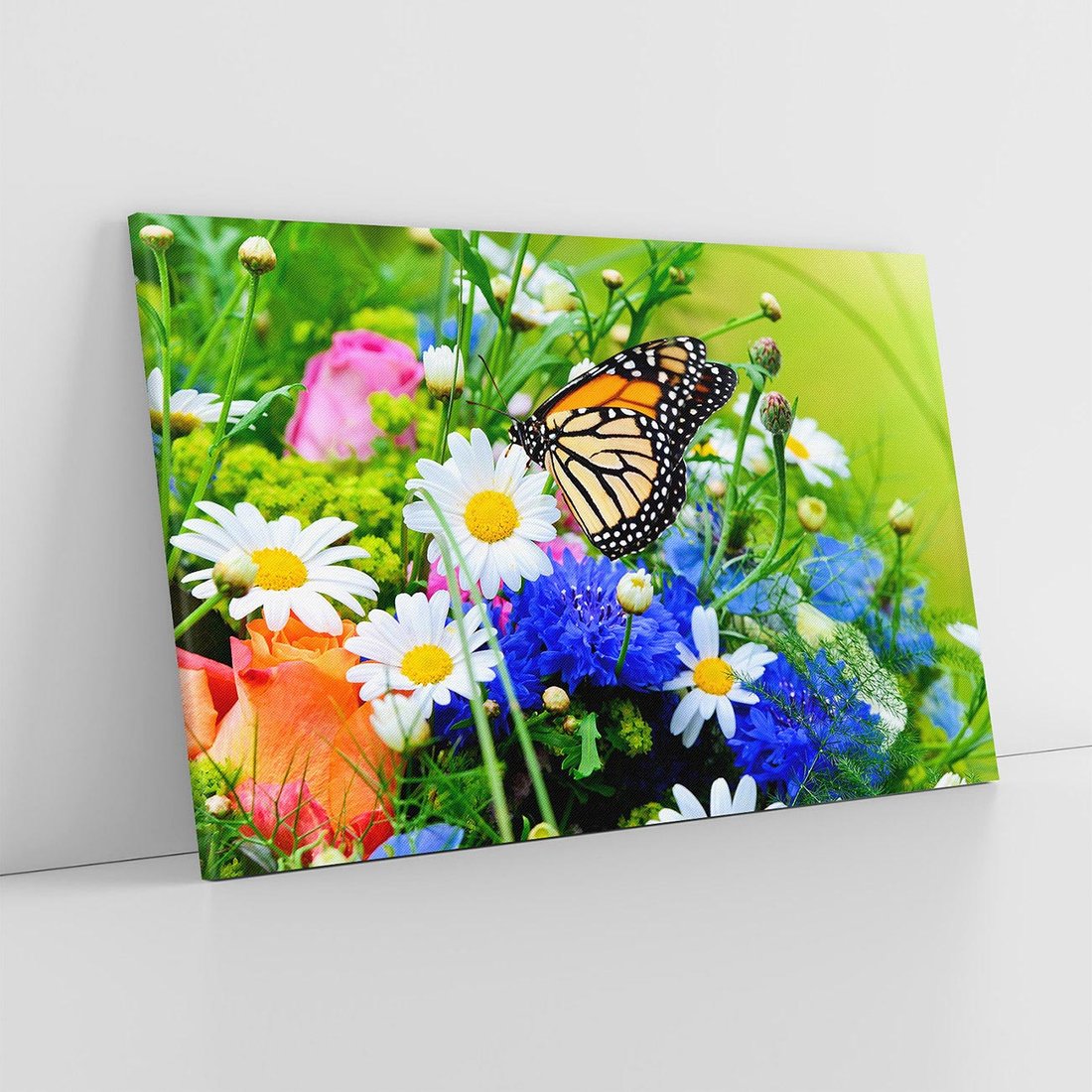 Obraz na płótnie 120x80 - Kwiatowy Taniec - motyl, kwiaty