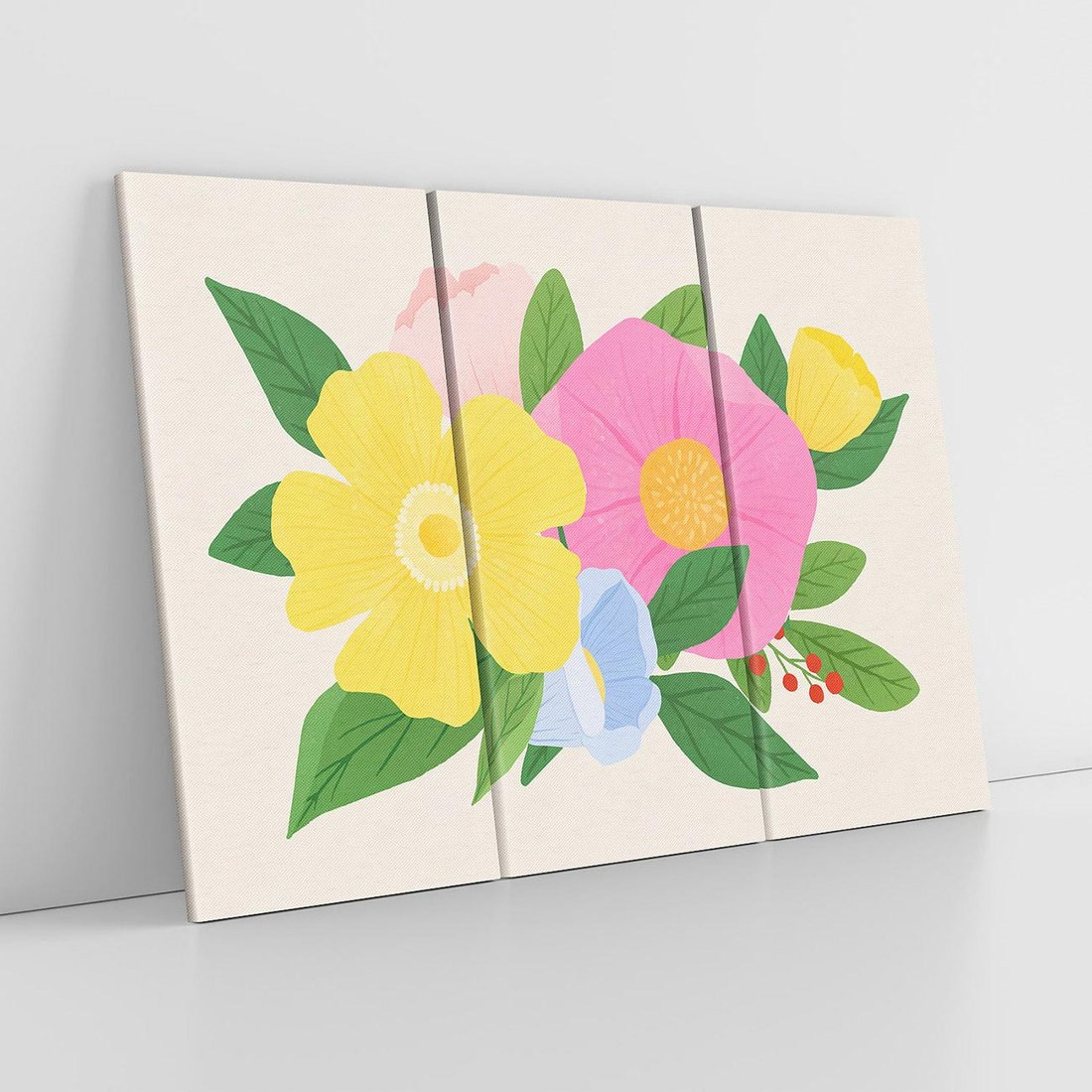 Ten kolorowy obraz w technice akwareli przynosi do dziecięcego pokoju magiczną aurę kwiatów. Harmonijne połączenie barw tworzy subtelny i łagodny efekt, który idealnie wpisuje się w przytulne wnętrze, dodając nuty czarującej poezji natury.