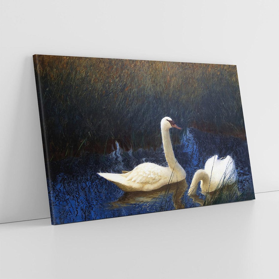 Obraz na płótnie 120x80 - "Łabędzie w trzcinach" (1907) Bruno Liljefors - Reprodukcja - reprodukcja, obraz na płótnie