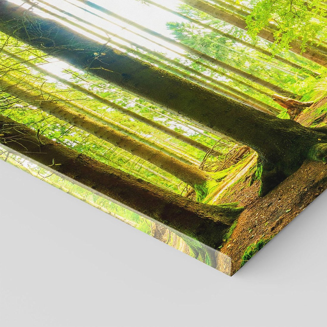 Przenieś się w świat bujnej przyrody dzięki temu uroczemu obrazowi przedstawiającemu las w pełnym rozkwicie. Złote promienie słoneczne, zielone drzewa i malownicze krajobrazy tworzą harmonijną kompozycję. Ten obraz dodaje spokoju i bliskości natury, idealny dla osób pragnących odnaleźć harmonię i wyciszenie w otoczeniu lasu.