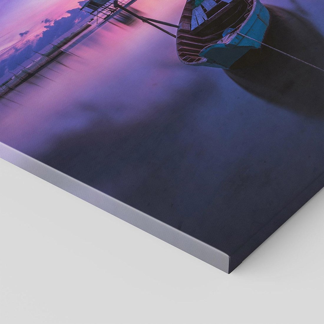 Ten romantyczny obraz ukazuje łódkę unoszącą się na falach morza w magicznym momencie zachodu słońca. Przenieś się w atmosferę spokoju i romantyzmu, obserwując ten malowniczy widok. Dodaj nutę błogości i uroku morskiego do swojego wnętrza tym wyjątkowym obrazem.