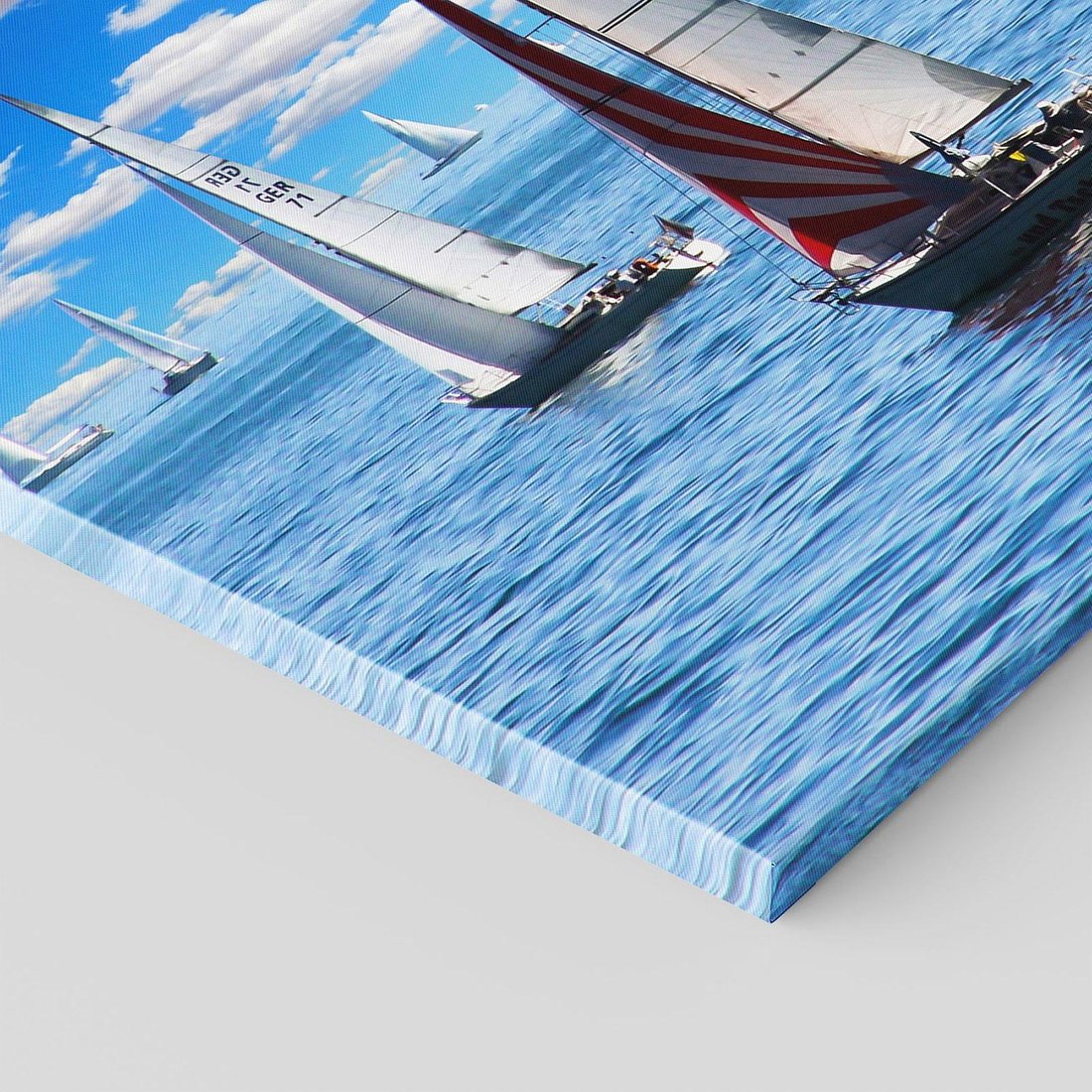 Ten malowniczy obraz przedstawia kolorowe łódki unoszące się na falach morza, które kontrastują z pięknym niebem. Ciesz się widokiem ich harmonii i dodaj nutę morskiego klimatu do swojego wnętrza tym wyjątkowym obrazem.