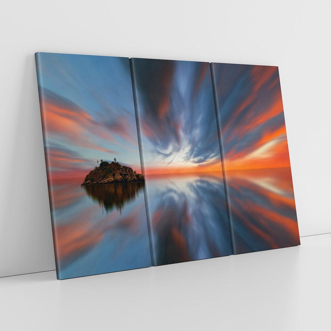 Ożyw swoje wnętrze tym malowniczym obrazem przedstawiającym morze i wyspę. Błękitna woda, odległe horyzonty i sielska atmosfera tworzą spokojną aurę. Ten obraz dodaje uczucia wakacyjnego relaksu i harmonii natury, idealny dla miłośników morskich krajobrazów i atmosfery wypoczynku w aranżacji wnętrza.