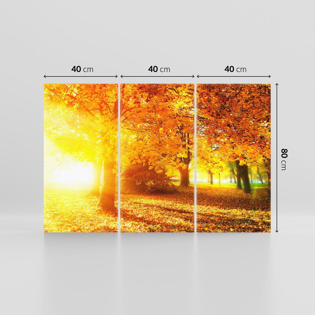 Ten malarski obraz na płótnie uchwyci magię jesieni w lesie. Jego złote, czerwone i pomarańczowe odcienie, opadające liście i gęste drzewa wprowadzą atmosferę nostalgii i piękna natury do Twojego wnętrza. Odczuj urok jesiennego krajobrazu w swoim domu.