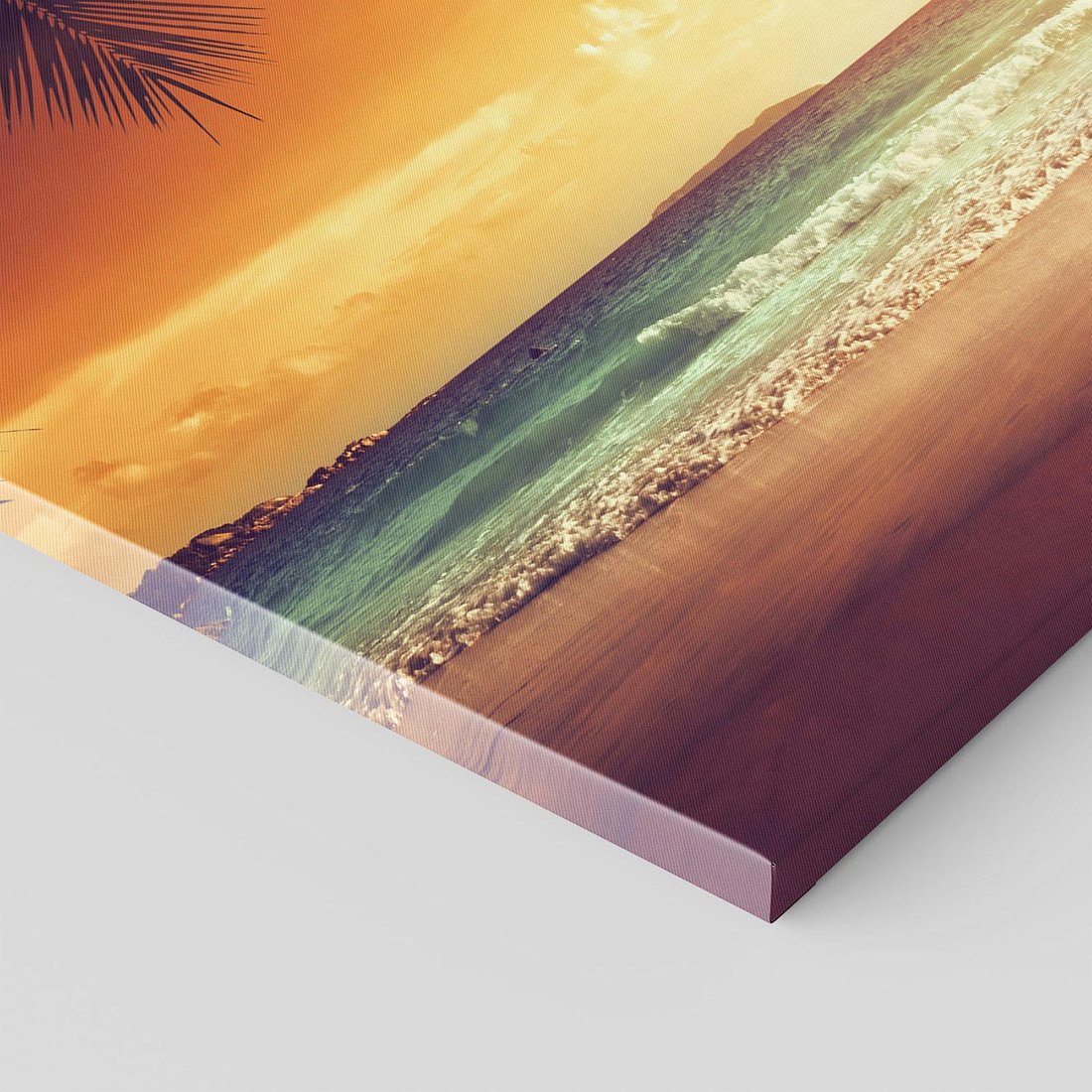 Ten ujmujący obraz przeniesie Cię na piękne plaże Karaibów podczas zachodu słońca. Jego ciepłe odcienie, złote promienie i błękitne morze stworzą atmosferę błogości i relaksu w Twoim wnętrzu. Odkryj piękno i romantyzm egzotycznych zachodów słońca w swoim domu.