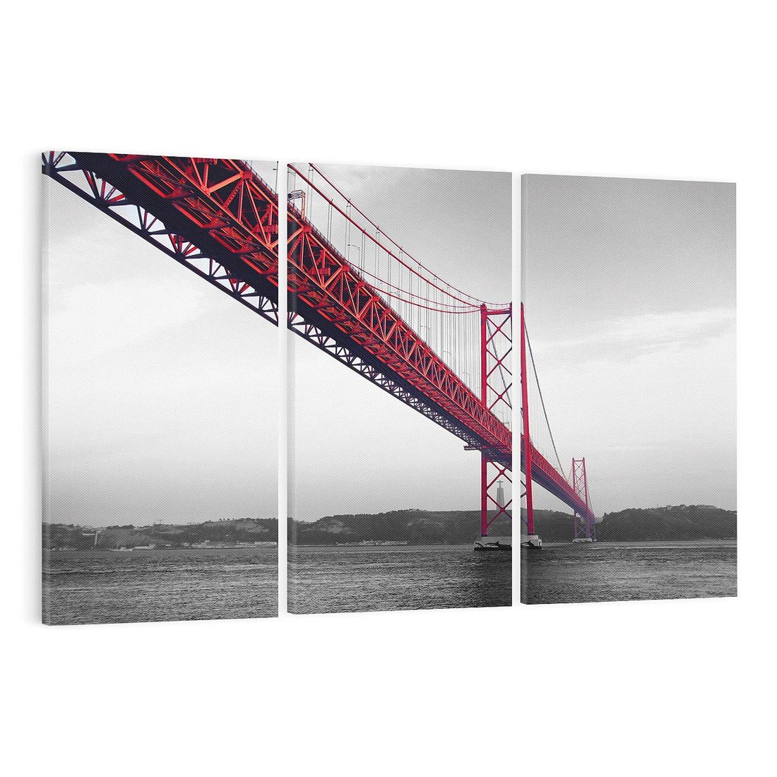 Obraz na płótnie 120x80 - Majestatyczny Most - czarno biała fotografia, czerwony stalowy most nad rzeką