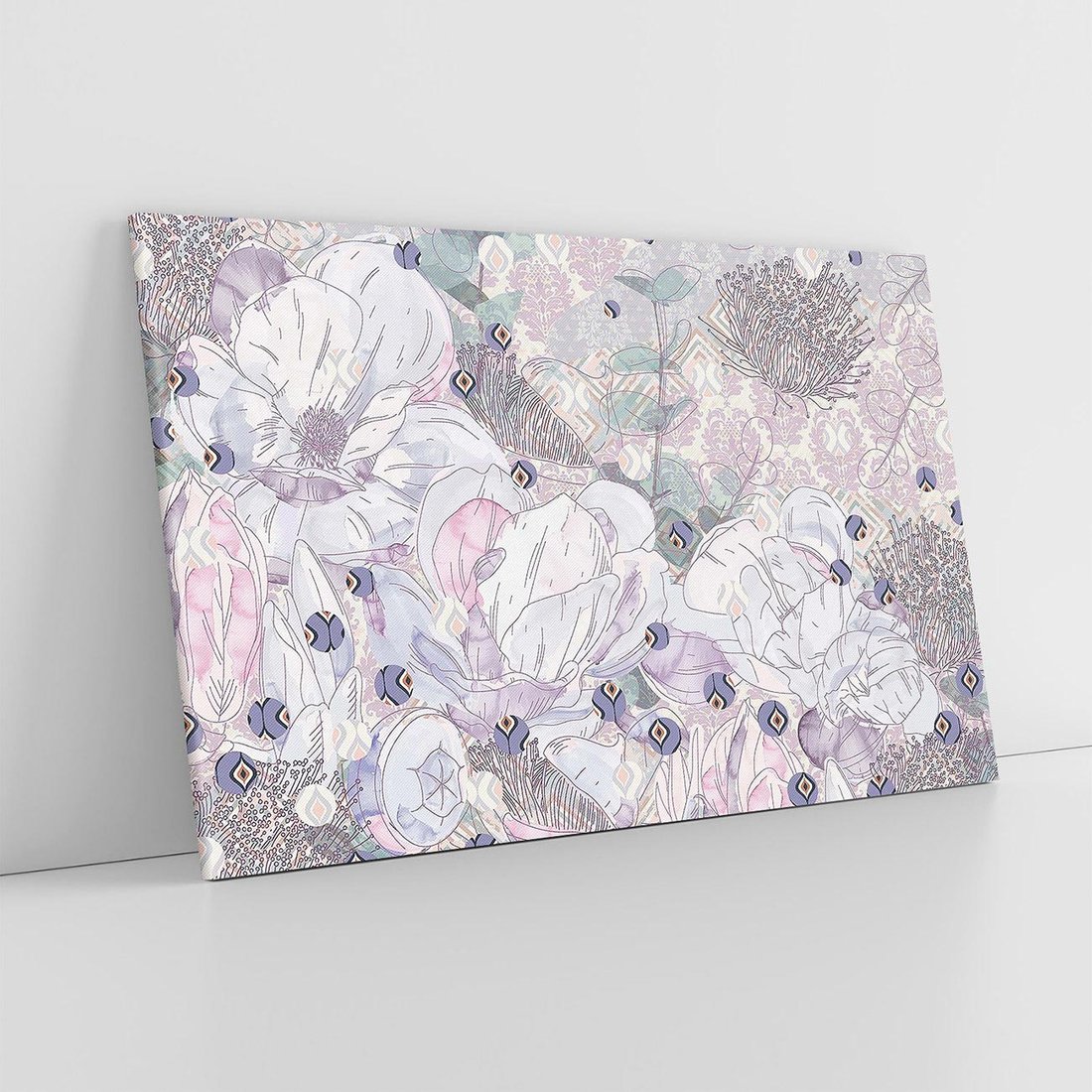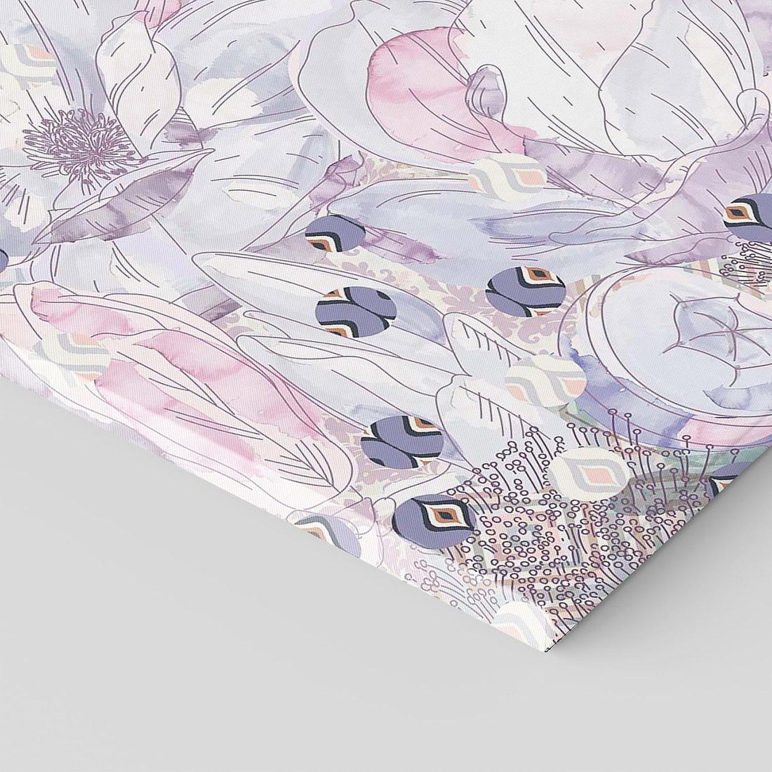 Przenieś się w świat spokoju i glamour z tym wyjątkowym obrazem, na którym tekstury tworzą harmonijną kompozycję. Kwiatowe elementy dodają mu delikatnego uroku. Odcienie różu i fioletu emanują wyrafinowanym stylem. To dzieło sztuki stworzone dla miłośników elegancji i romantyzmu, pragnących wprowadzić artystyczny akcent do swoich wnętrz. Doskonały sposób na podkreślenie estetyki i piękna każdej przestrzeni.