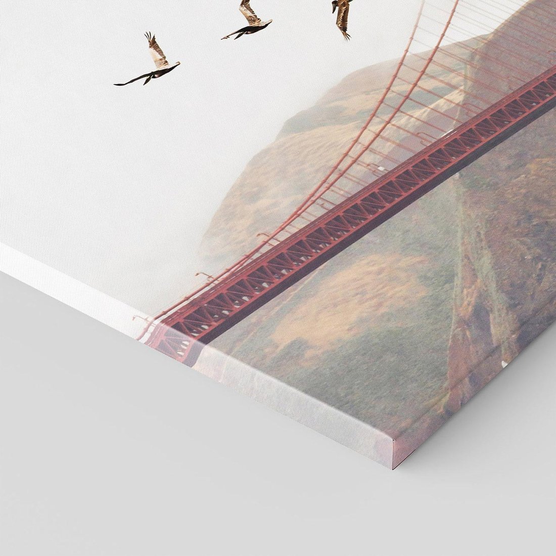Ożyw swoje wnętrze tym malowniczym obrazem przedstawiającym mewy przy słynnym moście Golden Gate. Sztormowa aura, tajemnicze ptaki i majestatyczna konstrukcja tworzą nastrojowy obraz. Ta kompozycja dodaje uroku nadmorskiego krajobrazu i unikalnej atmosfery, idealna dla miłośników przyrody i podróży w USA.