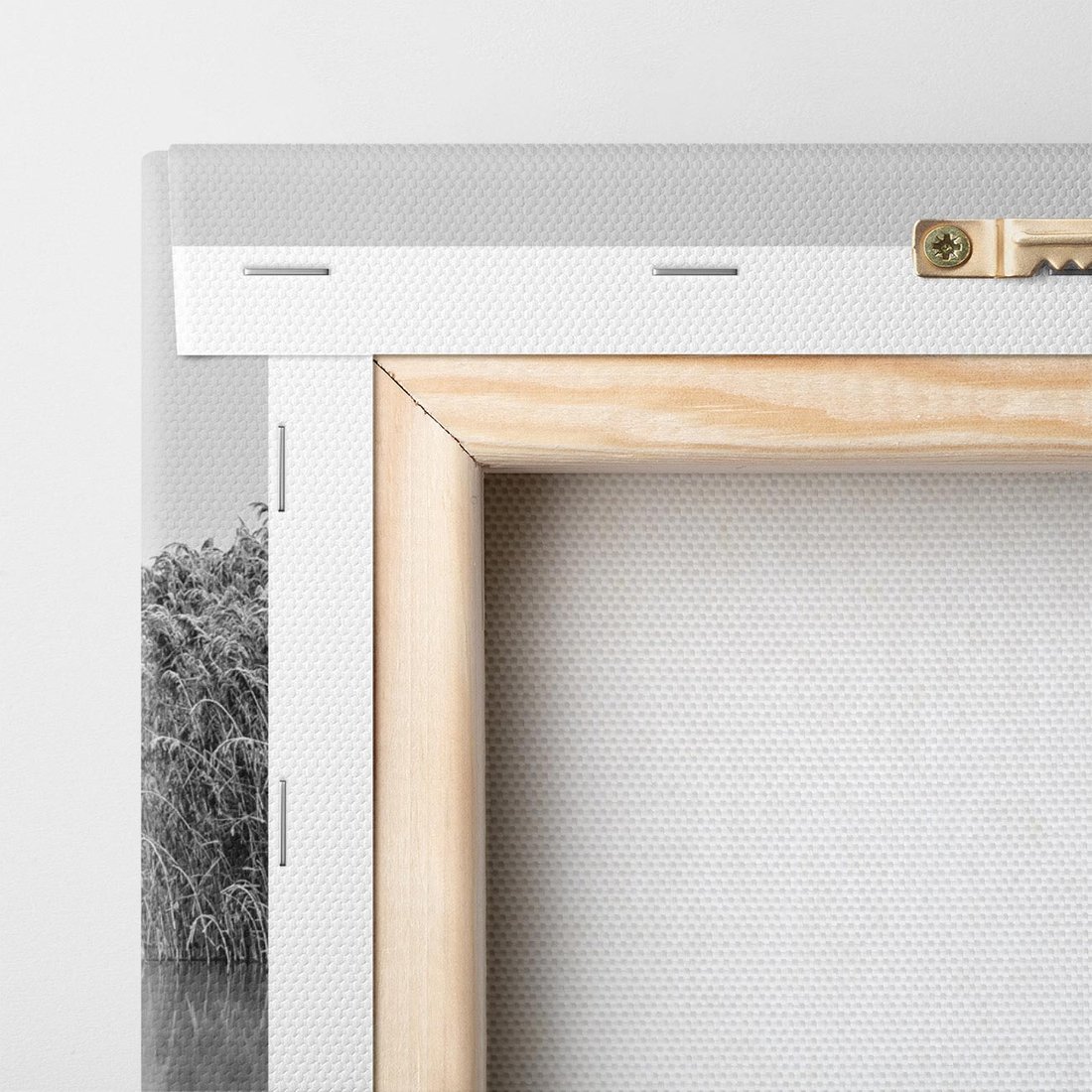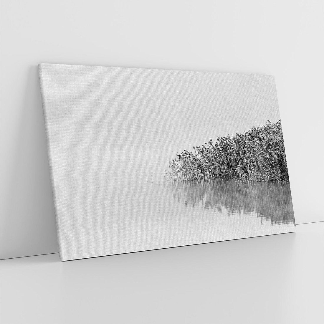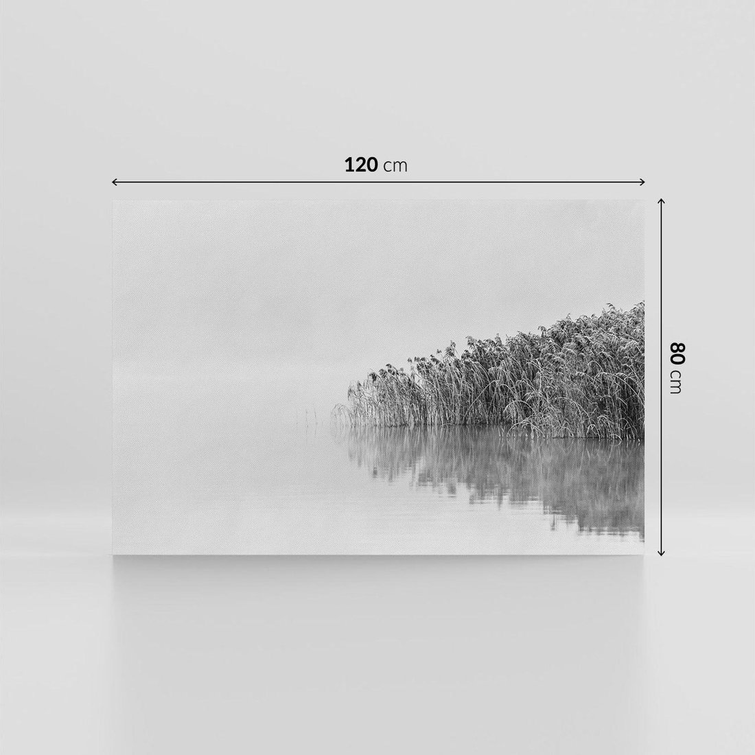 Obraz na płótnie 120x80 - Mglisty Brzeg Jeziora - czarno białe zdjęcie, zamglone jezioro