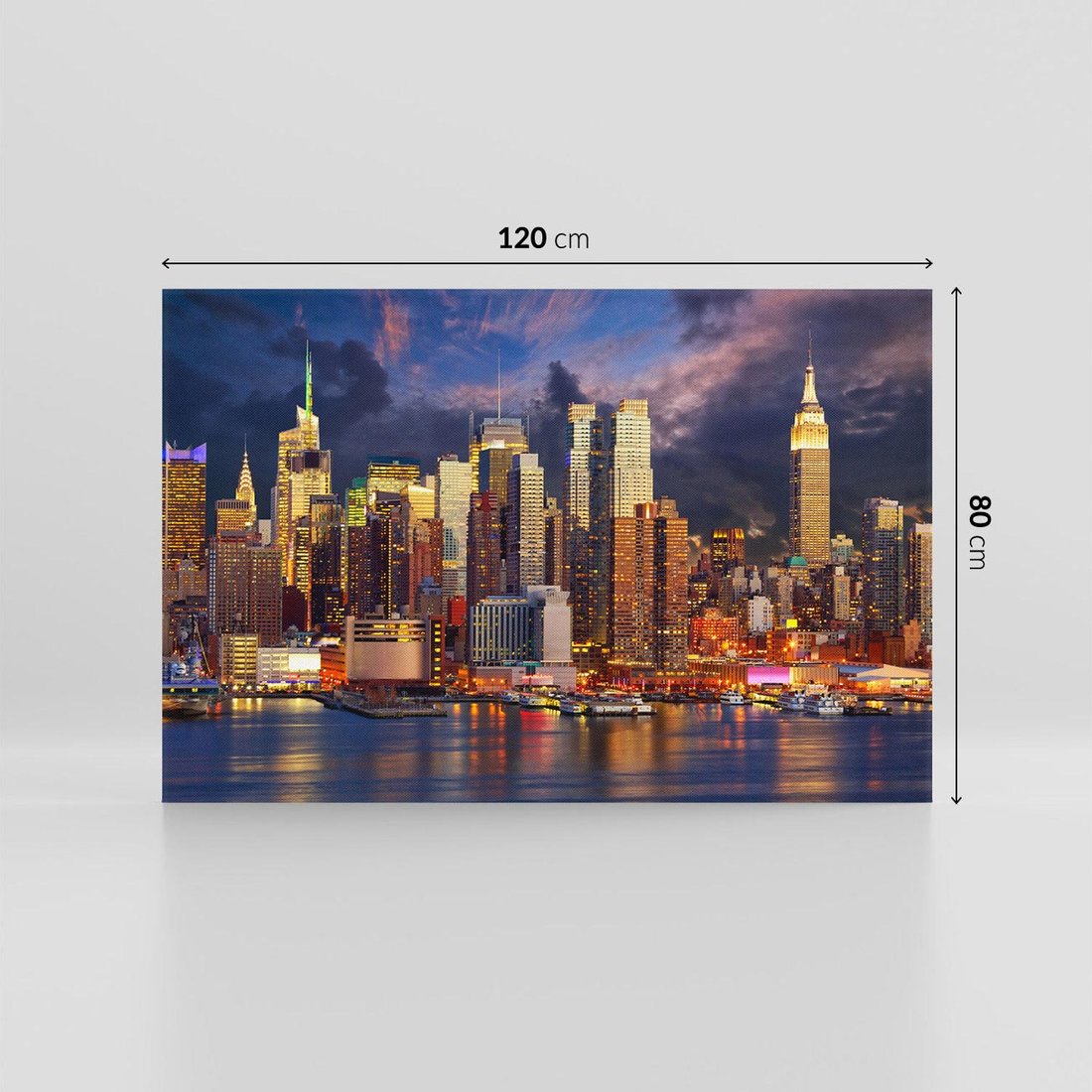 Ożyw swoje wnętrze tym malowniczym obrazem przedstawiającym nocne miasto Nowy Jork. Wielkie wieżowce, jaskrawe światła i pulsująca energia tworzą aurę miejskiego życia. Ta kompozycja dodaje dynamiki i atmosfery wielkomiejskiej, idealna dla miłośników Nowego
