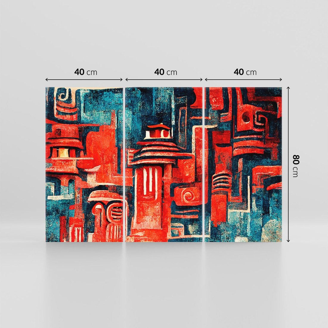 Przenikające się nawiązania do japońskiej i chińskiej kultury ukazane w granatowych i czerwonych barwach. Delikatne elementy architektury wtapiają się w malowniczy krajobraz, tworząc fascynującą orientalną sztukę. Idealne uzupełnienie dla wnętrz z odrobiną ducha Wschodu i tajemniczości.