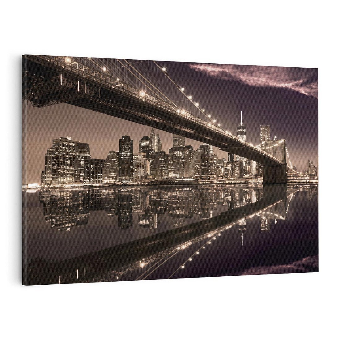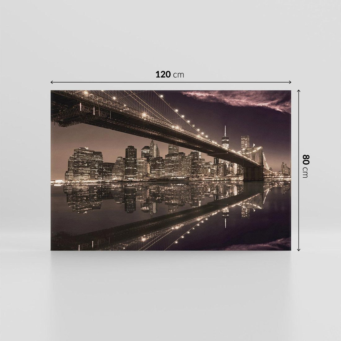 Przeniknij w atmosferę nocnego miasta dzięki temu uroczemu obrazowi przedstawiającemu most na horyzoncie. Z oświetlonymi latarniami i dynamicznym miastem, tworzy atmosferę tajemnicy i podróży w nieznane. Ta kompozycja dodaje wyrazu i miejskiego klimatu, idealna dla miłośników nocnych pejzaży i wielkomiejskiego stylu.