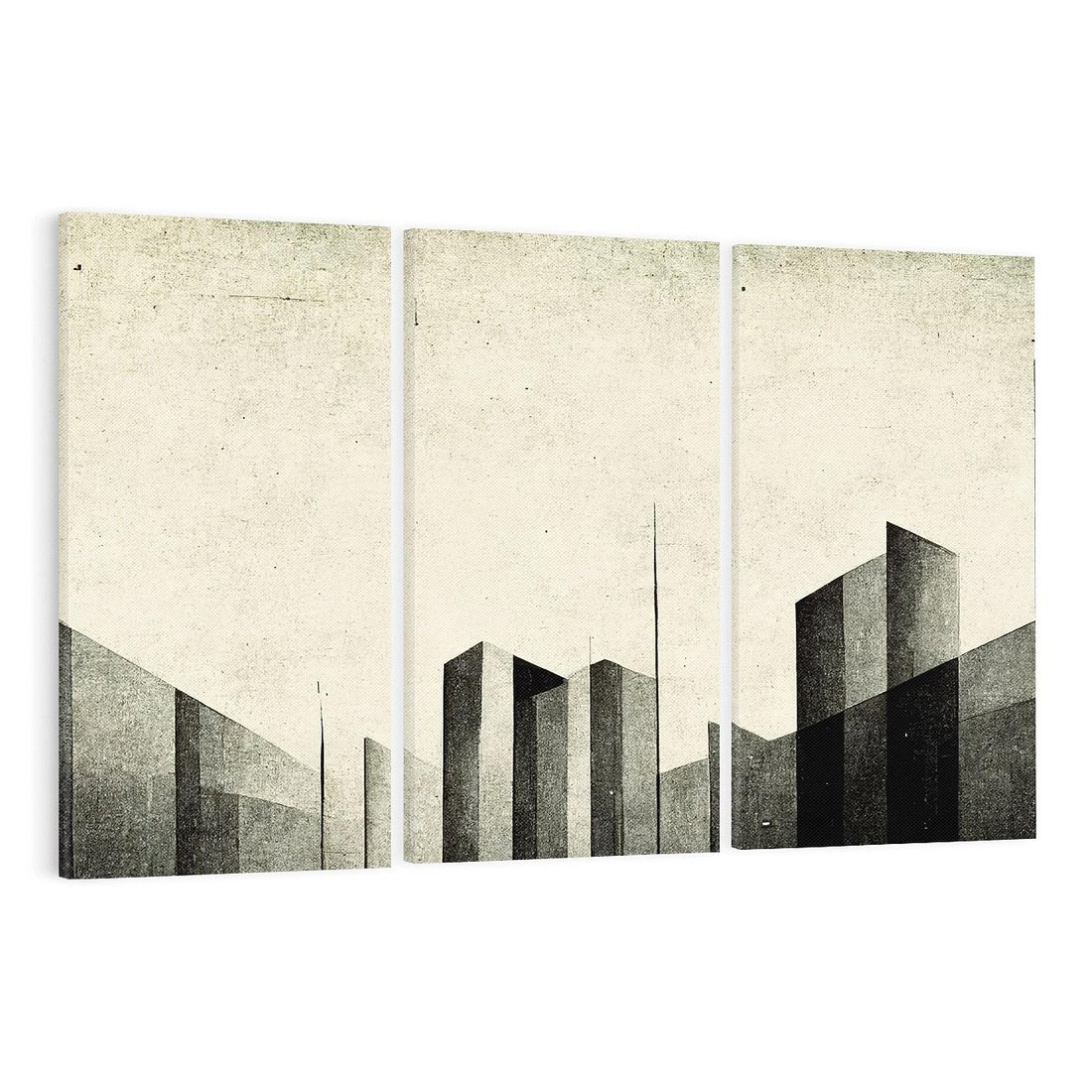 Obraz na płótnie 120x80 - Mroczne Wieżowce - postarzana grafika, perspektywa budynków wieżowców